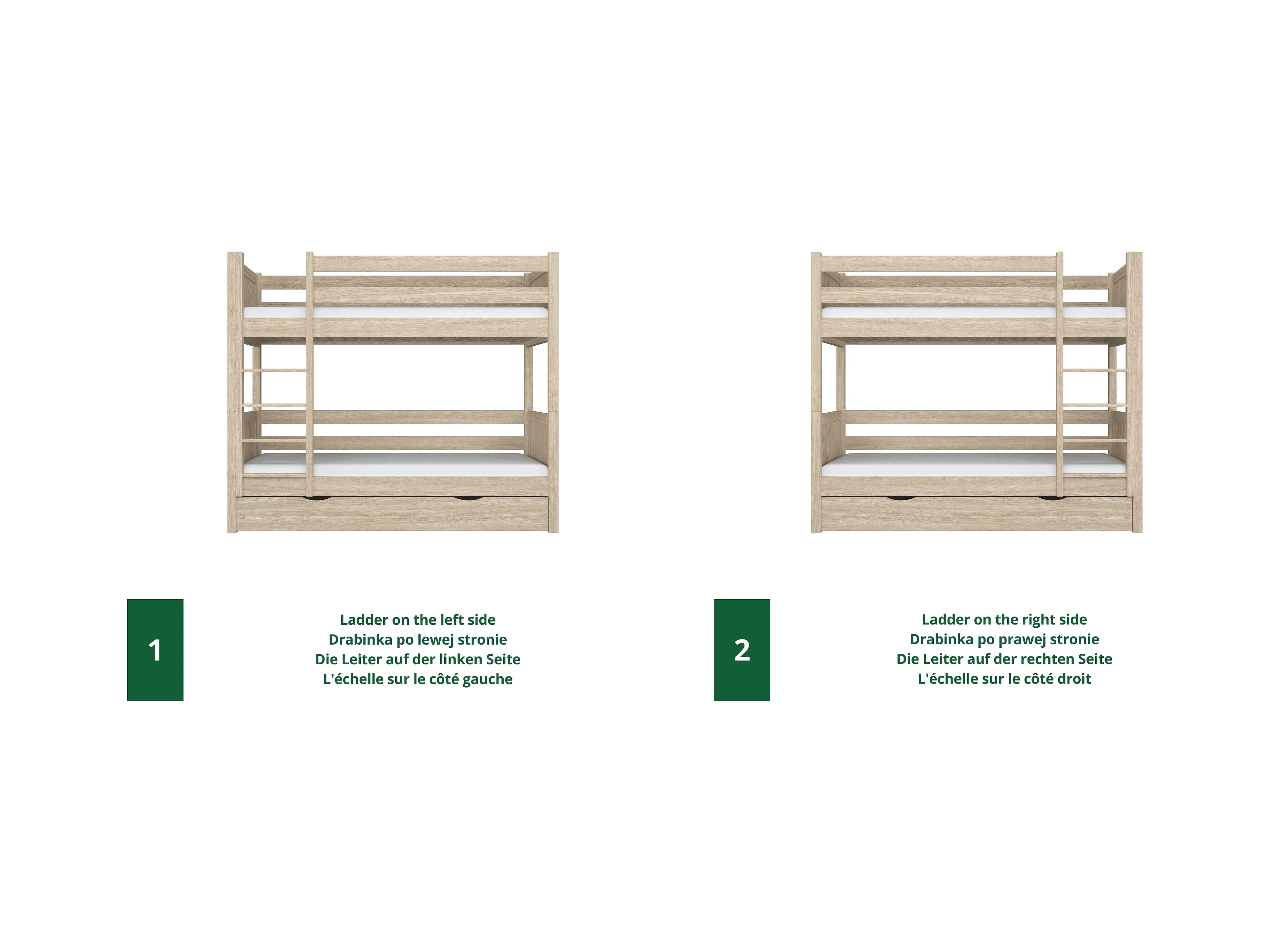 ETAGENBETT N02 mit Matratzenschublade Sonoma Eiche 80x180