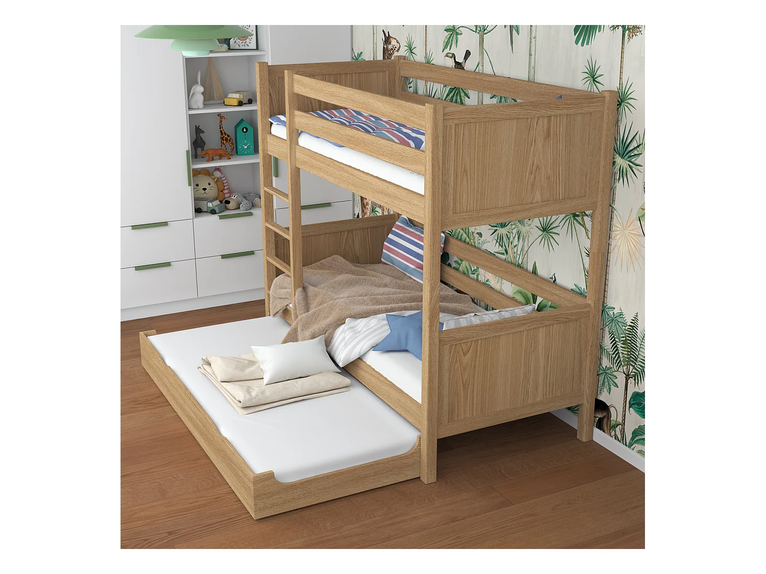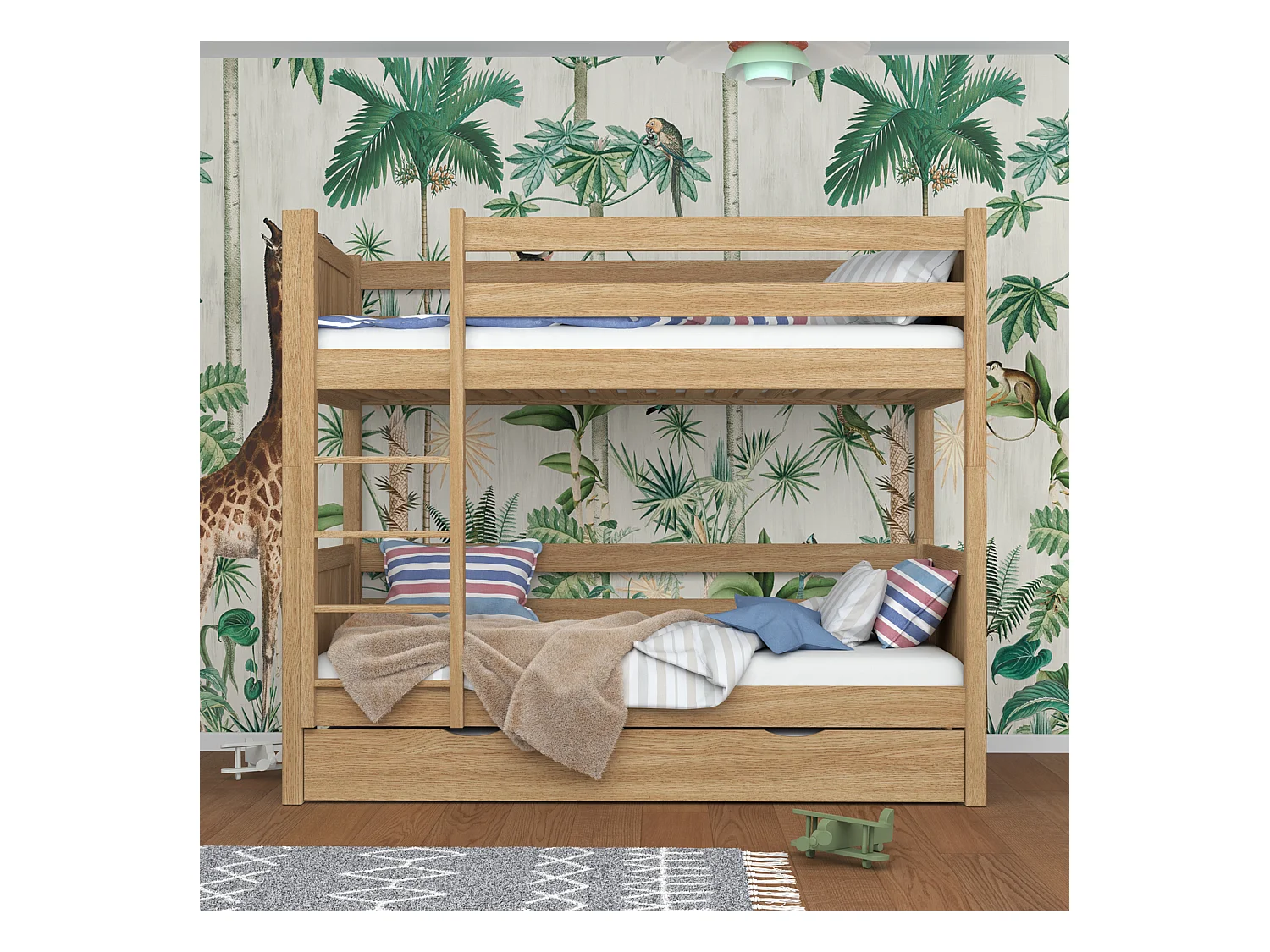 ETAGENBETT N02 mit Matratzenschublade Eiche Natur 120x180