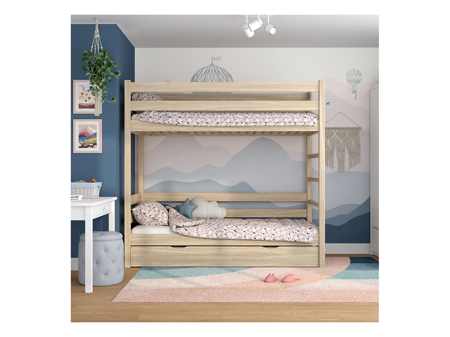 ETAGENBETT N03 mit Matratzenschublade Sonoma Eiche 90x180