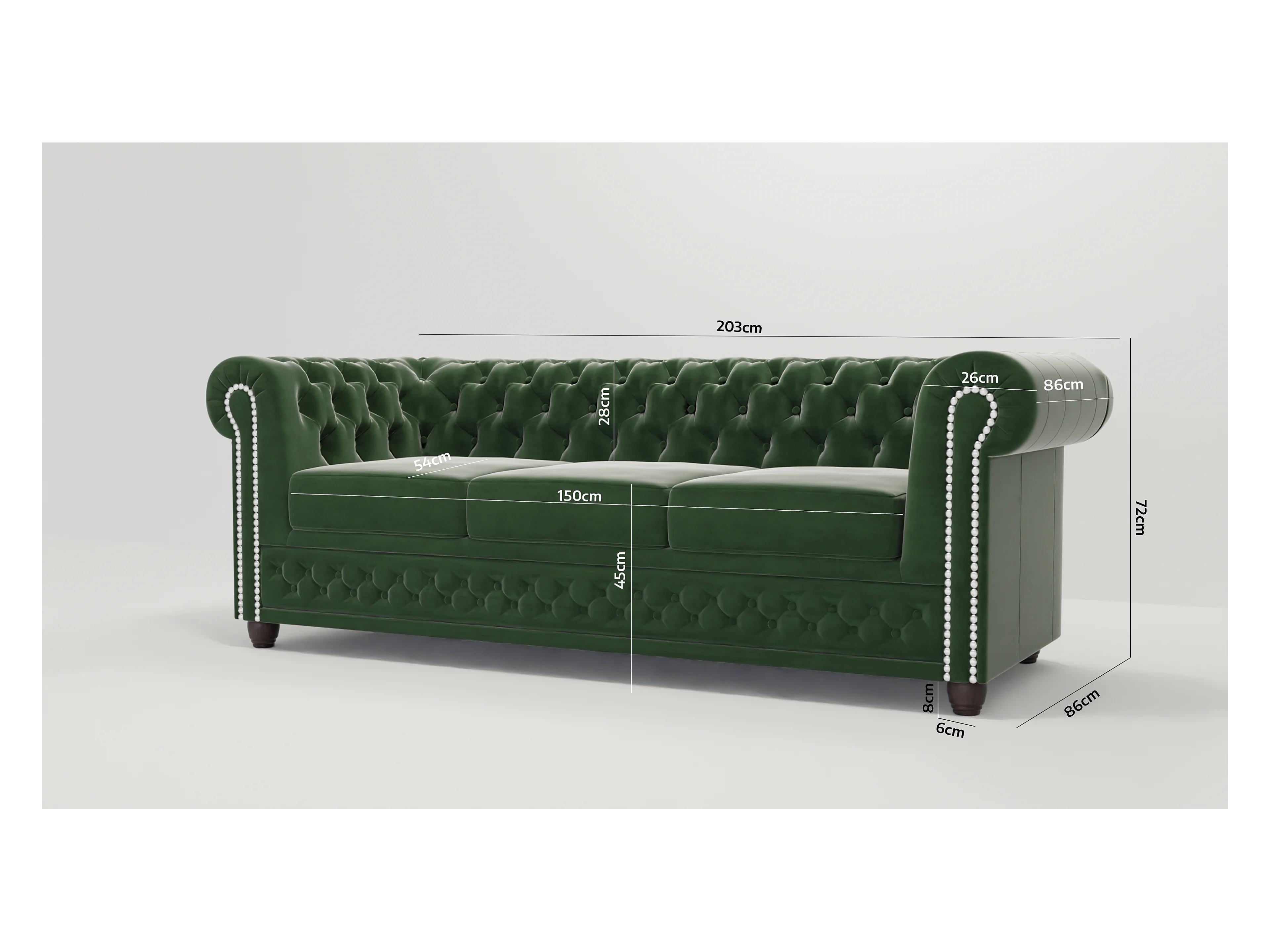 Liv 3-Sitzer Chesterfield Sofa mit Schlaffunktion Samt Bezug