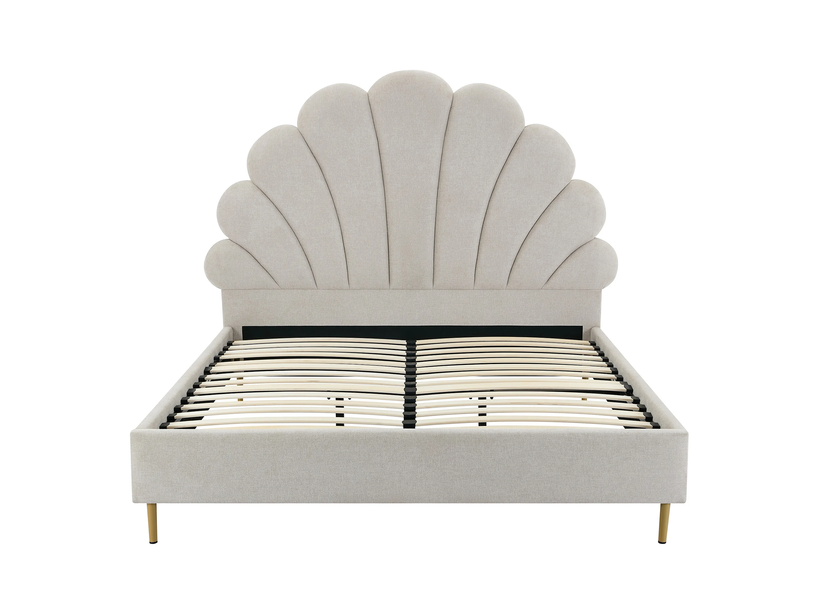 Bett mit Kopfteil in Muschelform + Matratze - 140 x 190 cm - Stoff - Beige - LIVAYA