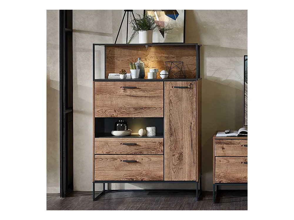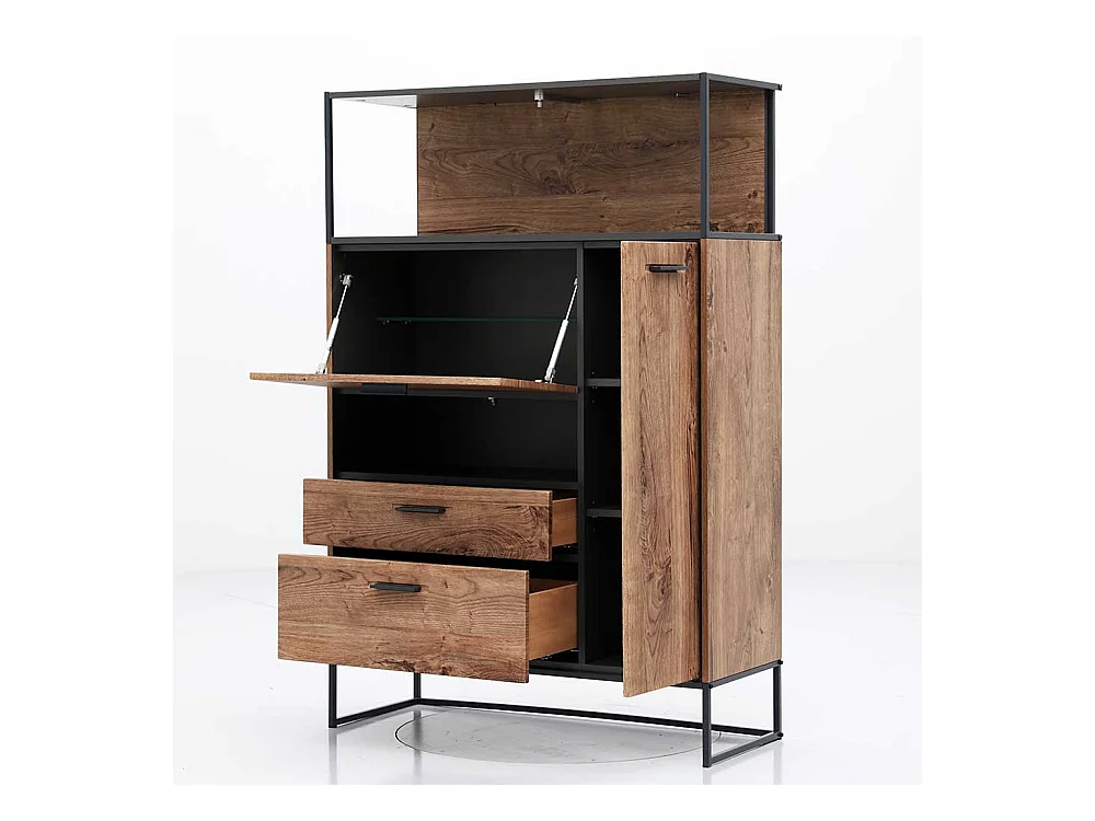 Loft Design Highboard in Eiche dunkel Optik und Dunkelgrau Klappe
