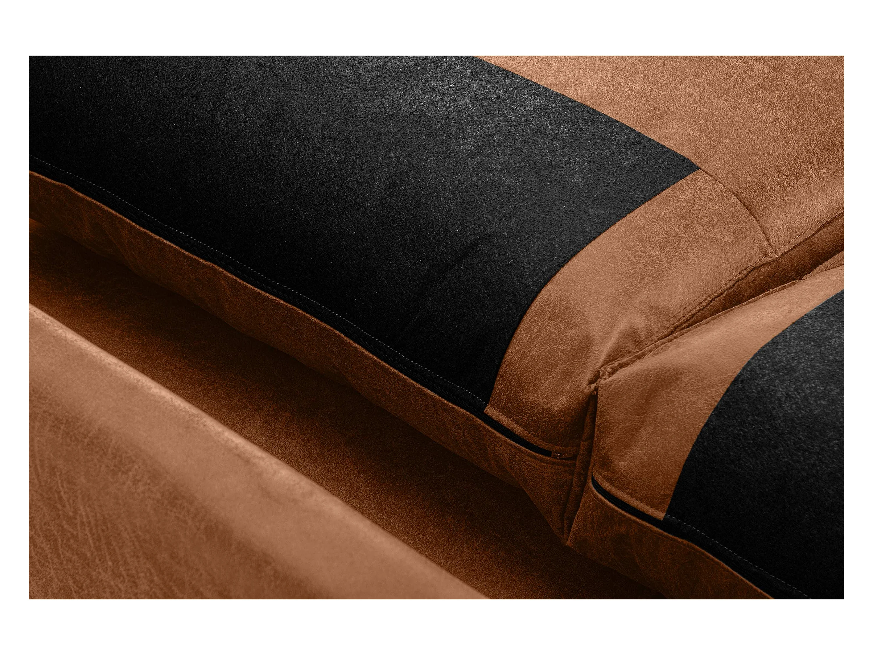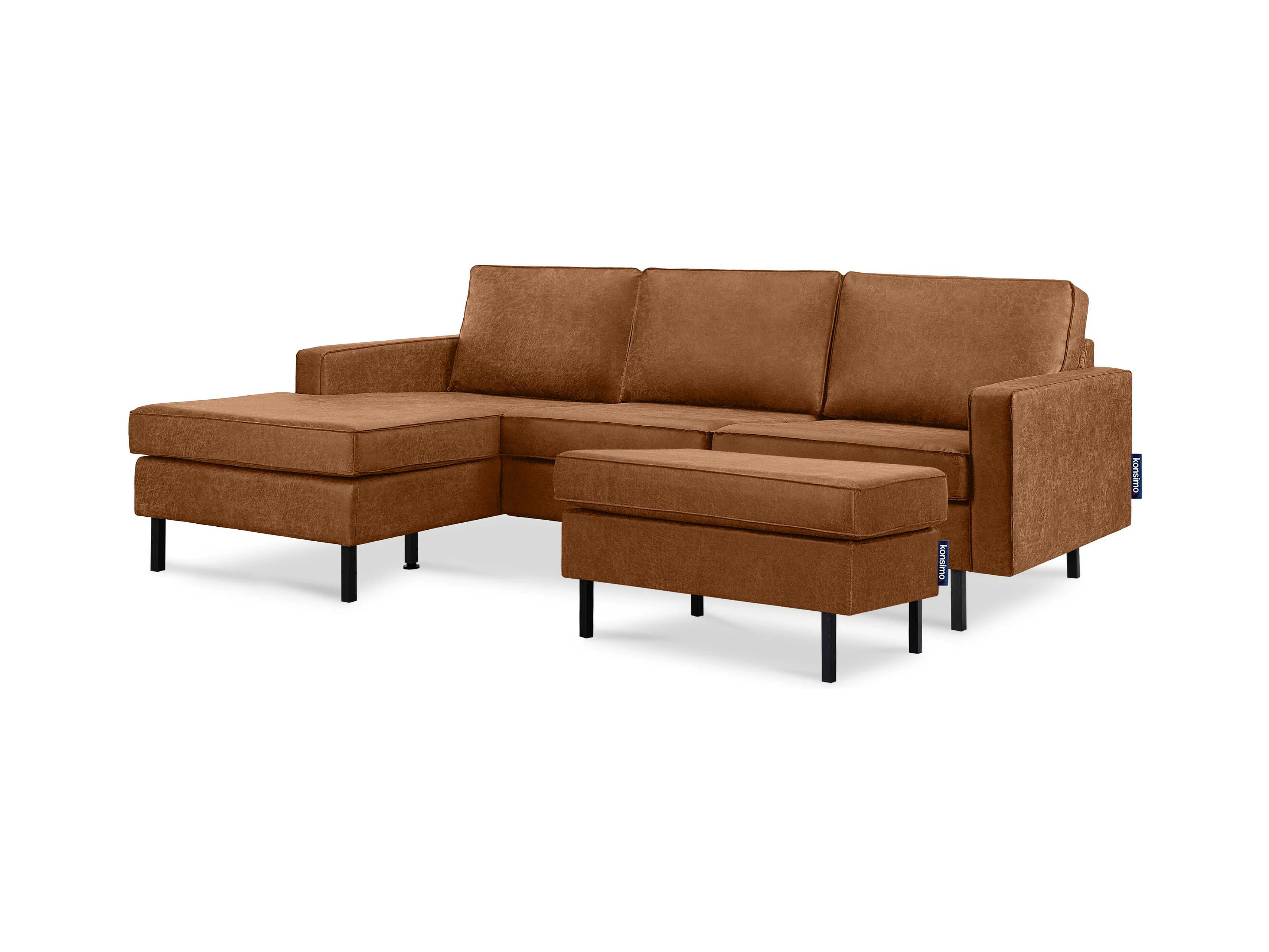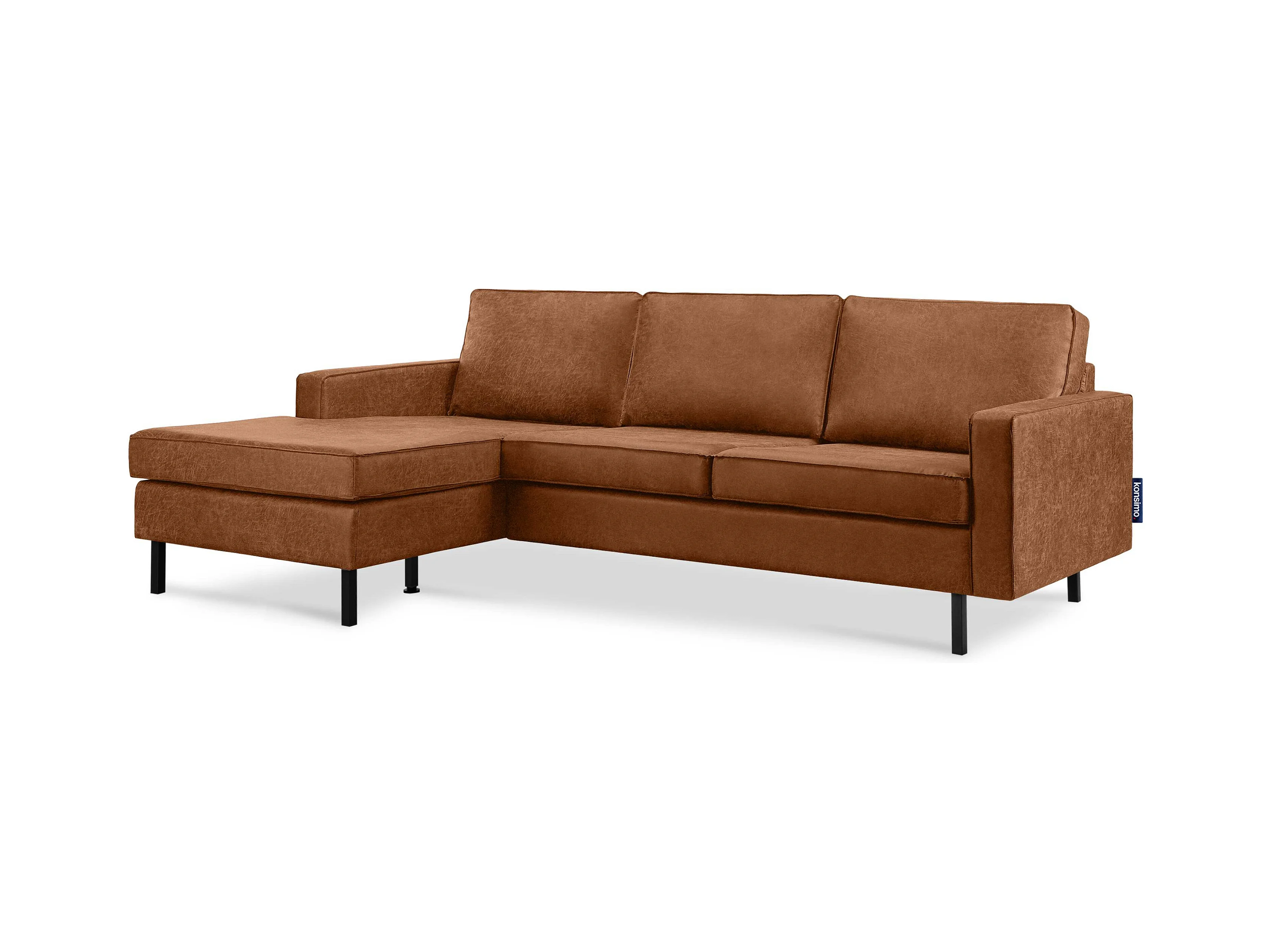 Loft Ecksofa links 4 Sitzer aus Leder und Mikrofaser - cognac - INVIA