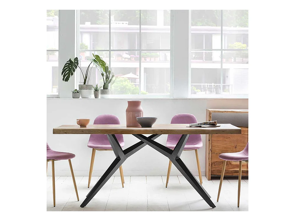 Loft Esstisch aus Akazie Massivholz Eisen in Schwarz