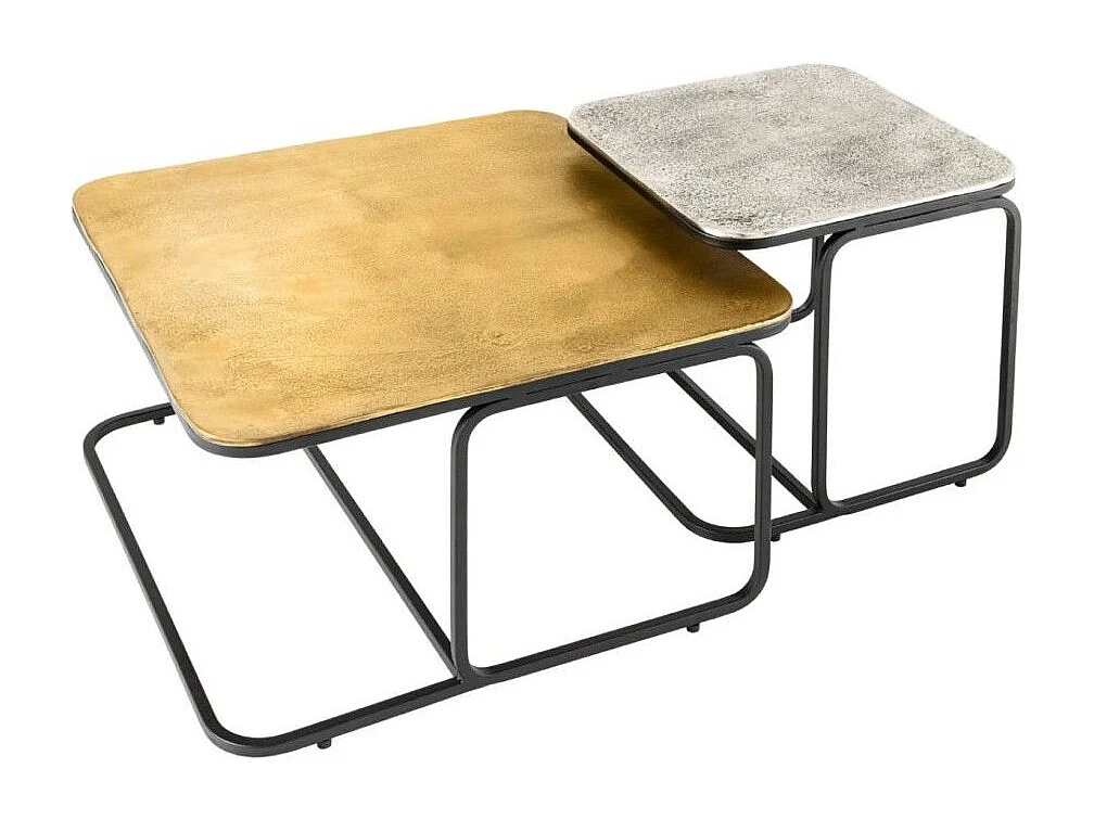 Lot de 2 Beistelltische METRIX quadratisch in Gold und Silber – Stapelbare Designer-Couchtische aus Metall