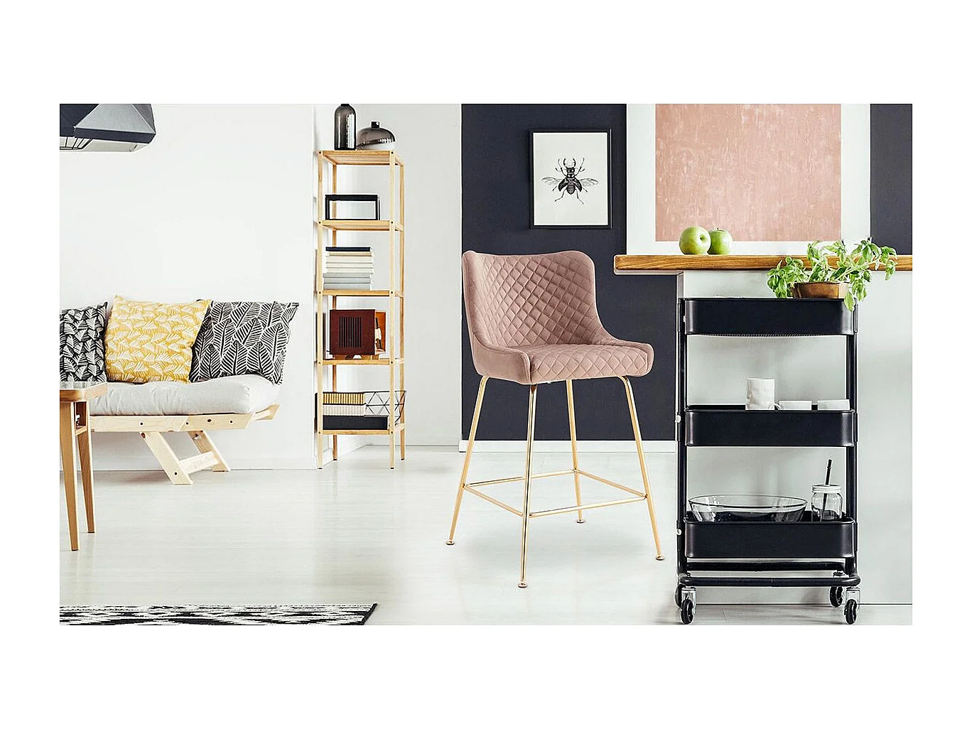 Lot de 2 chaises de bar Bellamy Velours Taupe pieds Or
