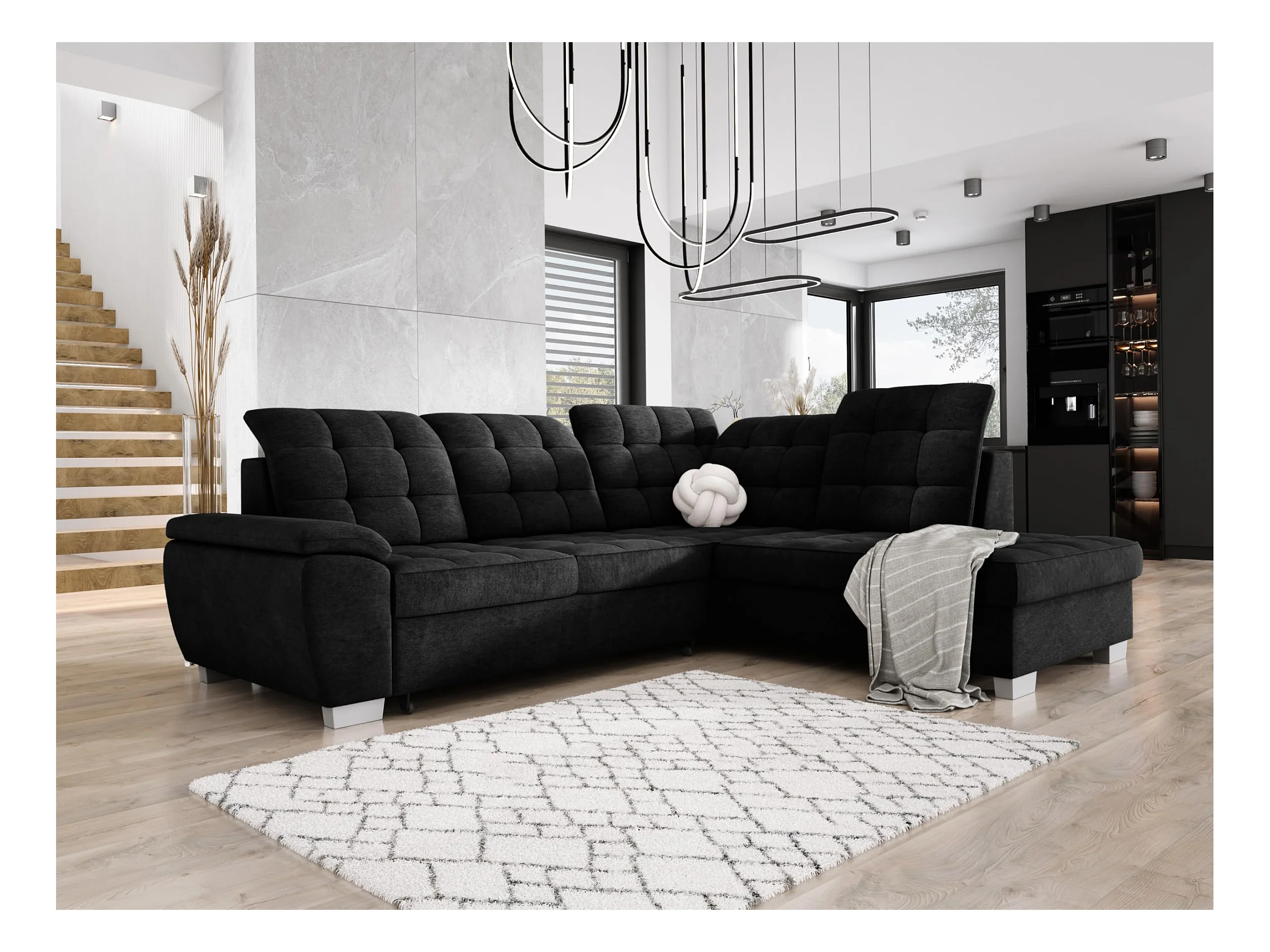 LOTTA Ecksofa mit ASTI-Stoffbezug, 258x212cm - elegantes Design, Schlaffunktion und viel Stauraum, rechts, SCHWARZ