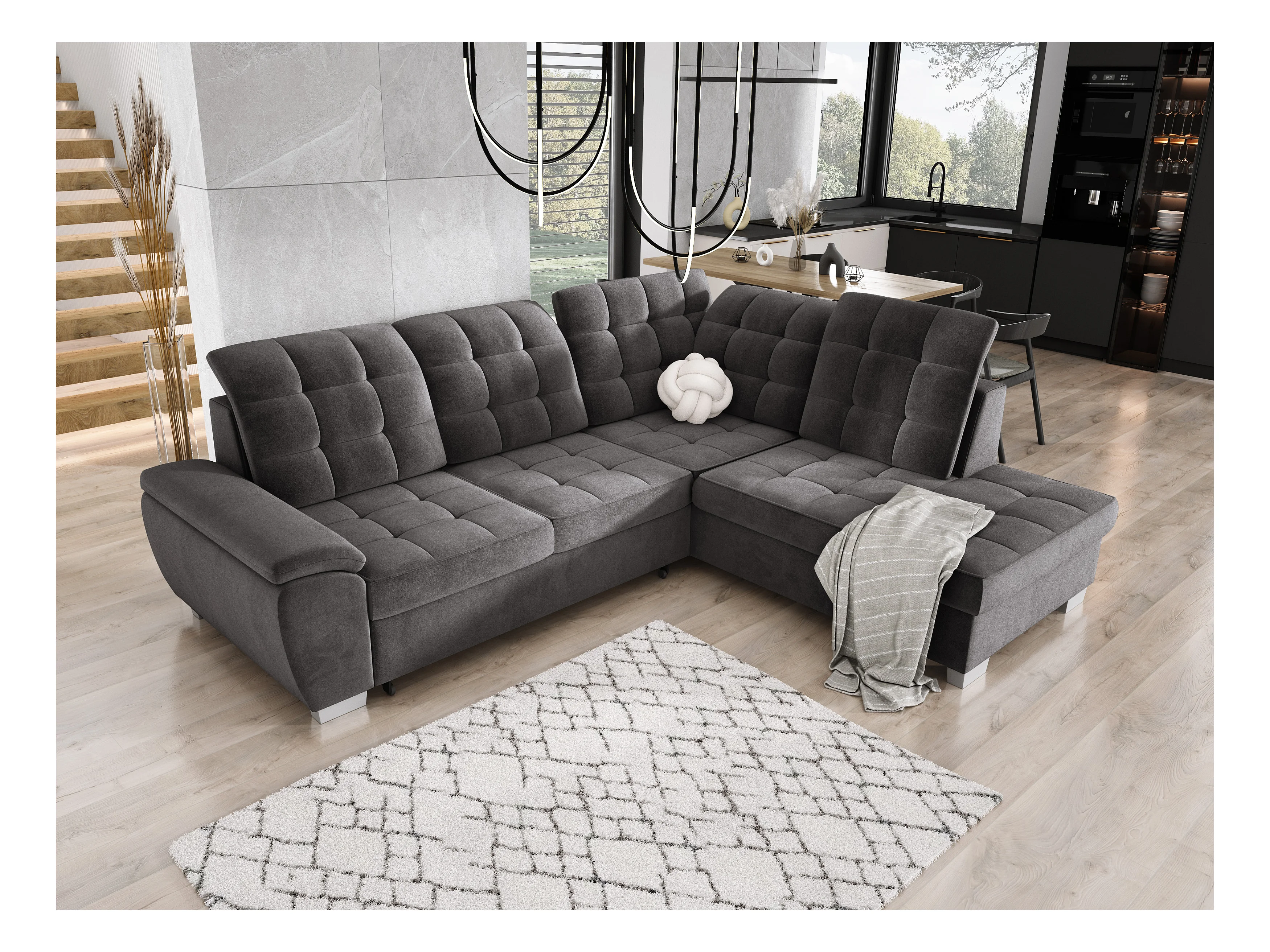 LOTTA Ecksofa mit SALVADOR-Stoff, familienfreundlich, praktischer Bettkasten, hochwertige Verarbeitung, 258x212 cm, rechte Ecke, DUNKELGRAU