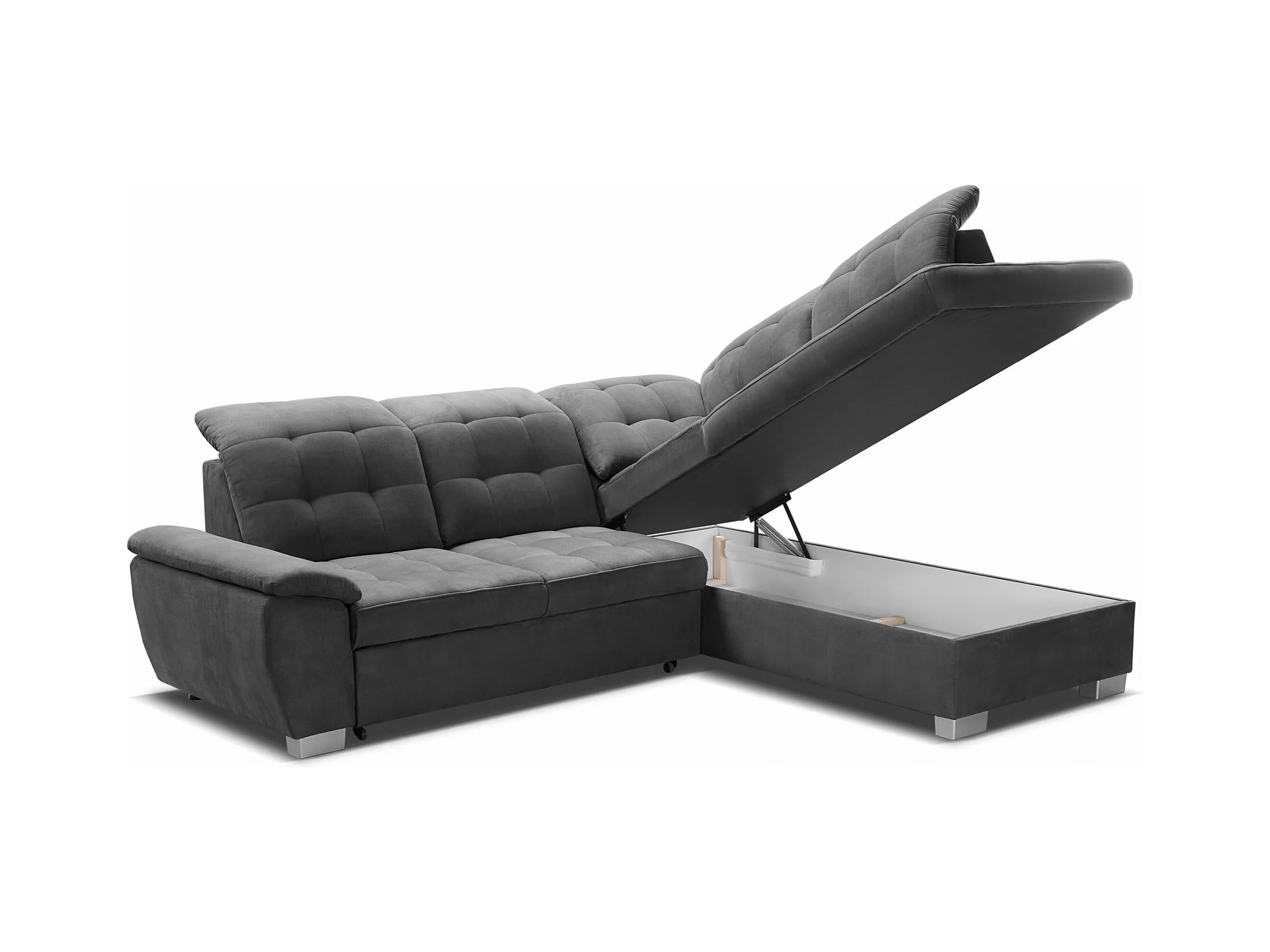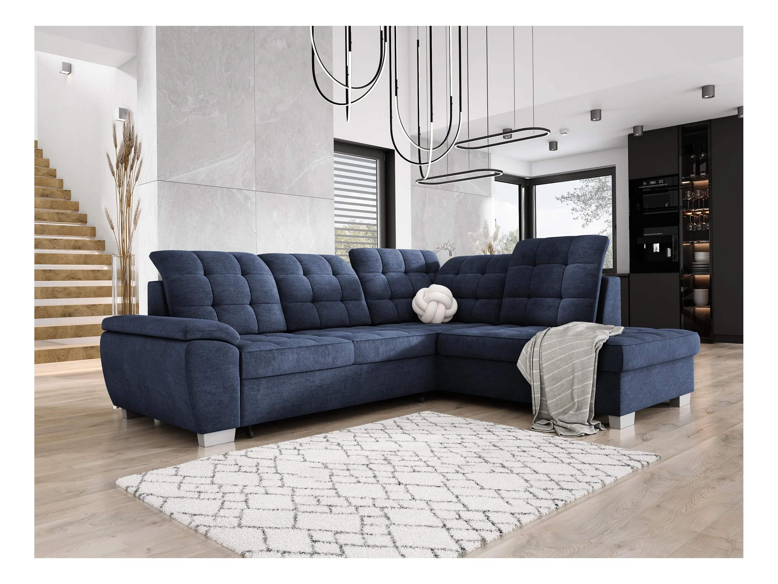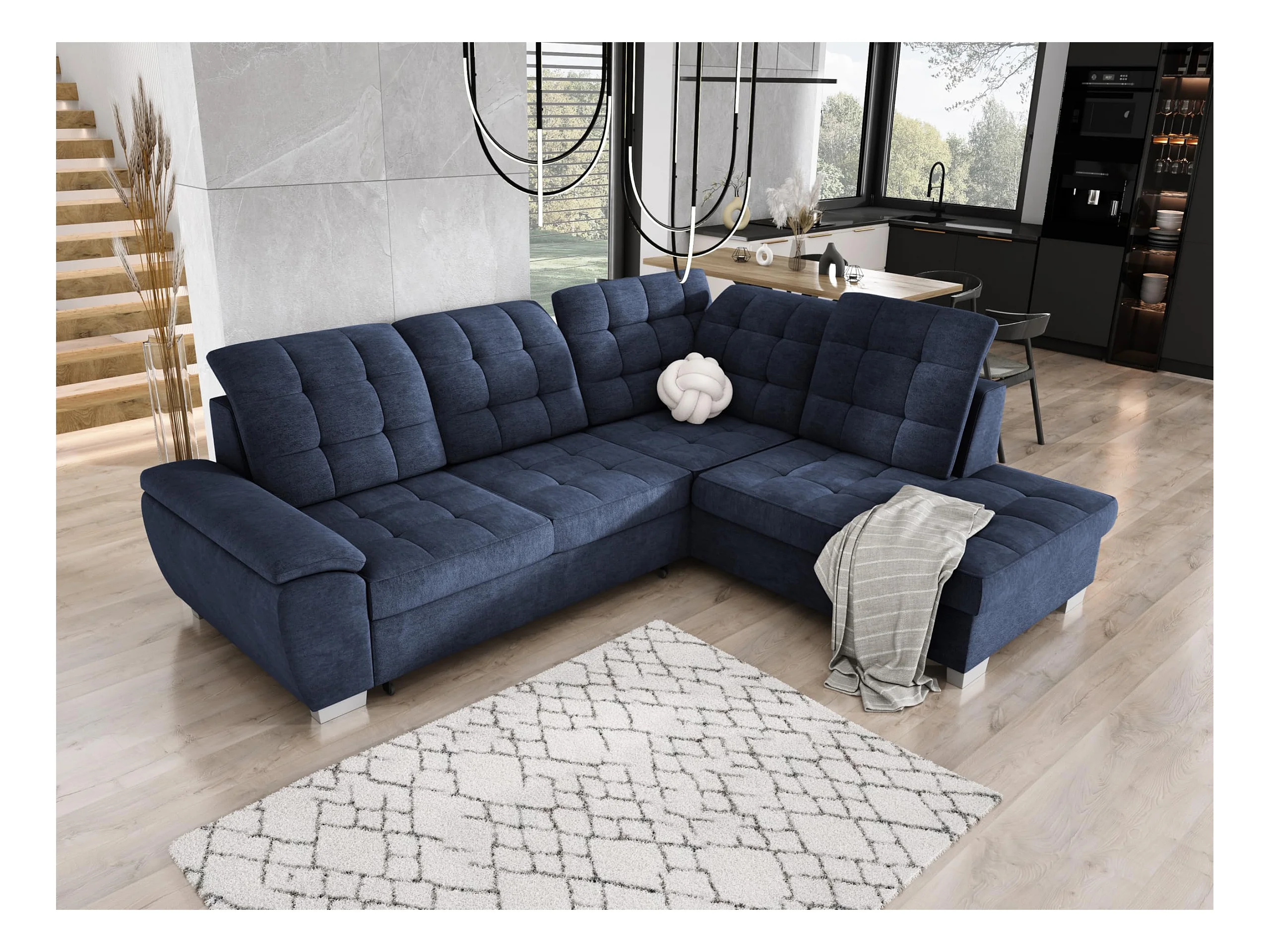 LOTTA Schlafsofa aus pflegeleichtem Samt, 258x212cm - ideal für Familien, mit praktischem Stauraum, rechts, BLAU.