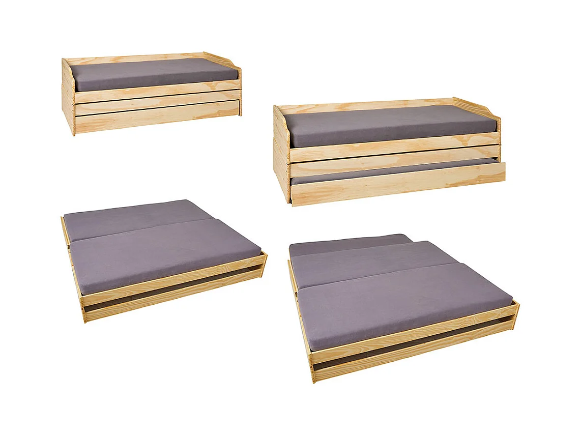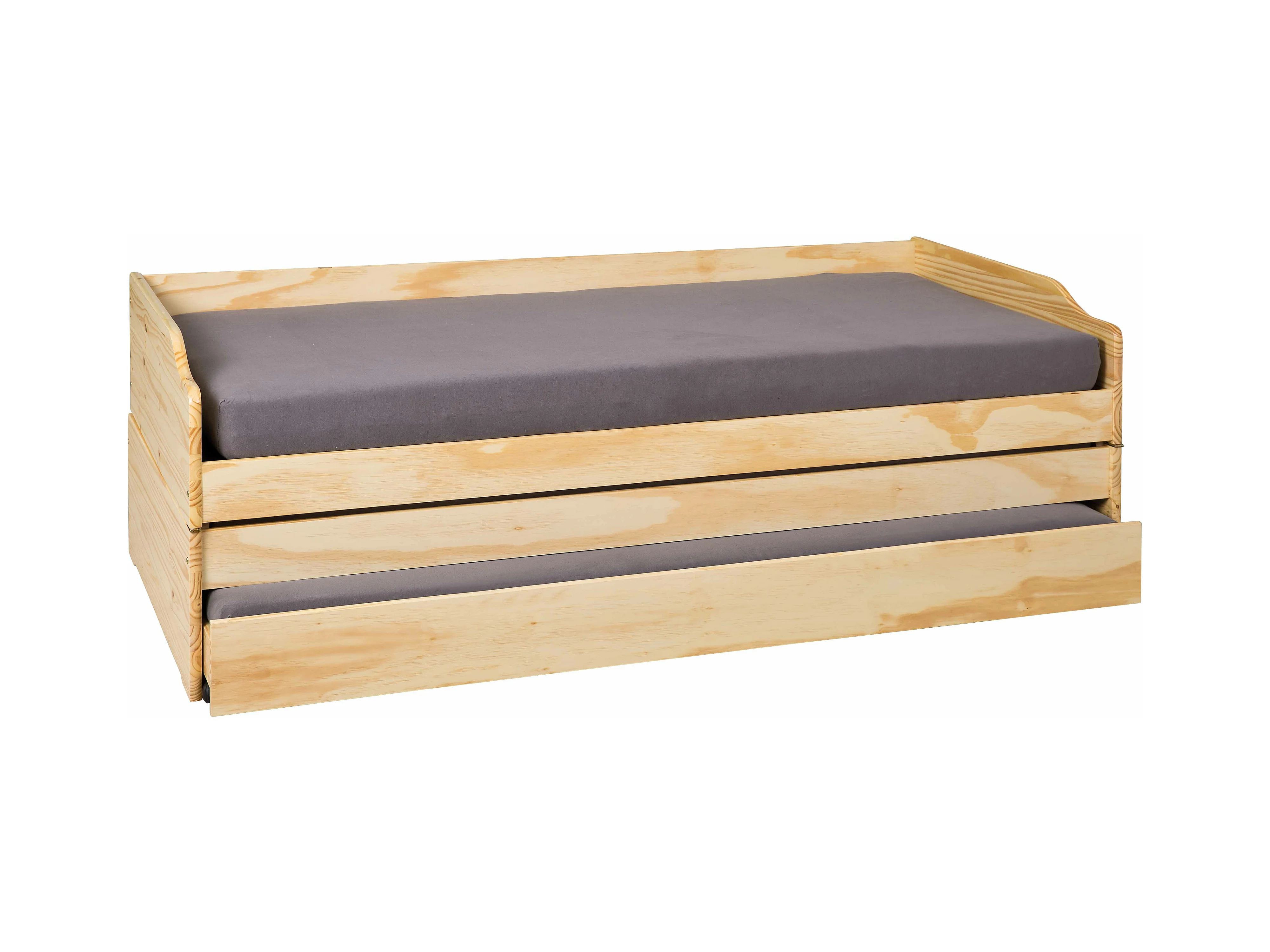 Lotved Bett 90x200 cm, 3 Schlafplätze, natur.