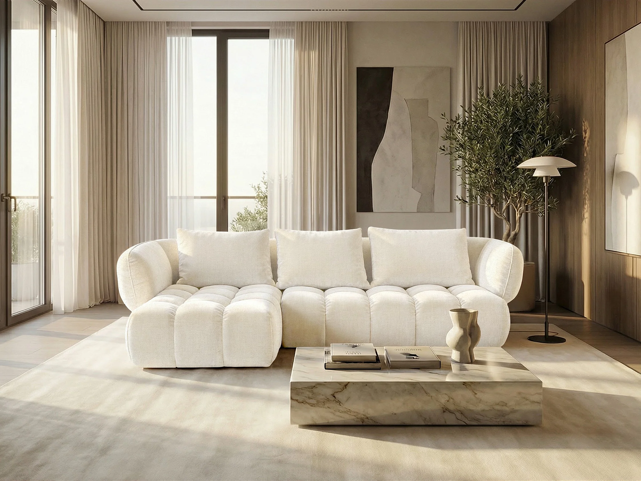 Lounge Ecksofa SAVIO - Puente 03 Cremeweiß links - 250x168 cm - Design Sofa HR