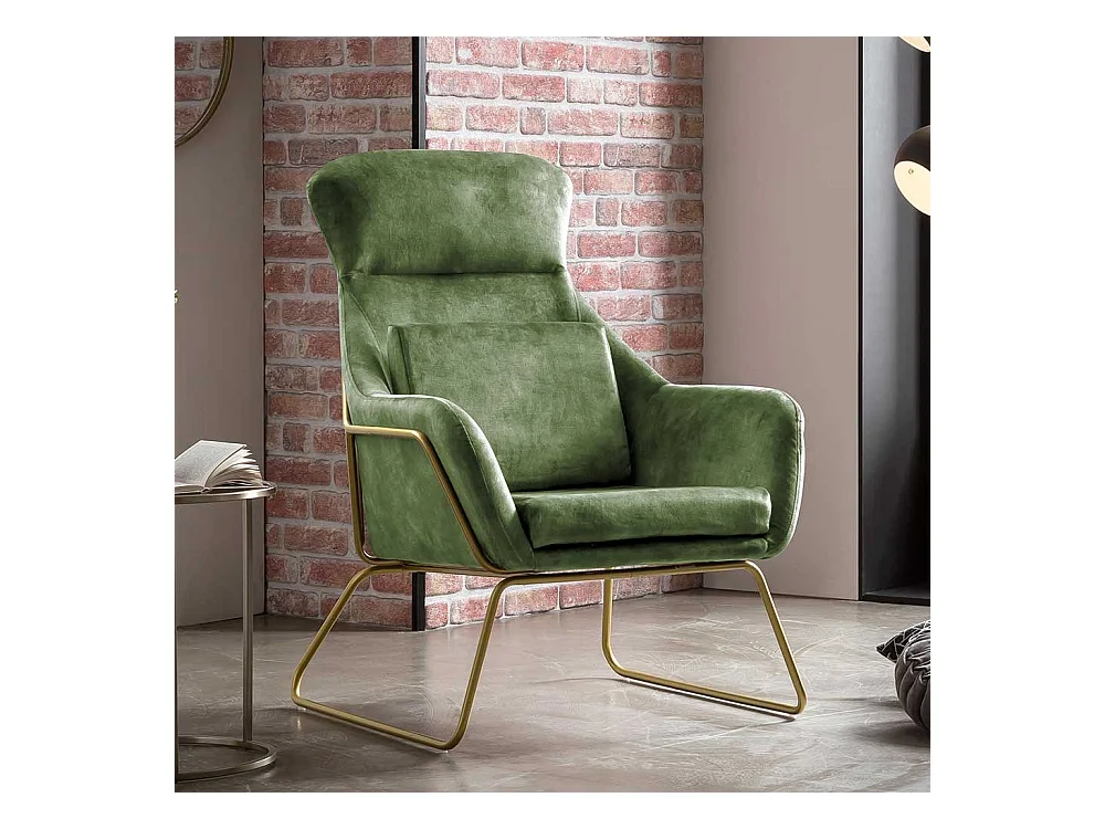 Lounge Einzelsessel aus Samtvelours Grün Metall Bügelgestell