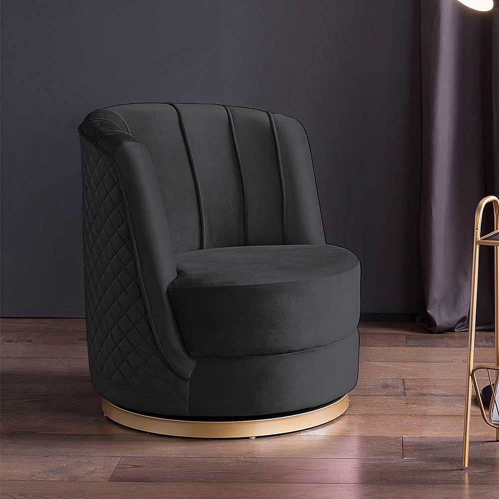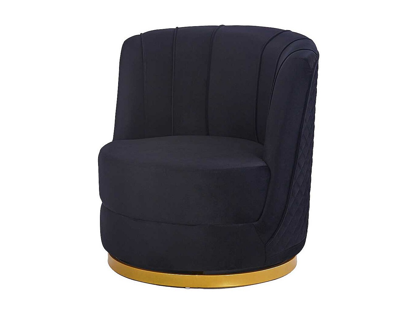 Lounge Sessel drehbar Samt in Schwarz und Goldfarben Retrostil