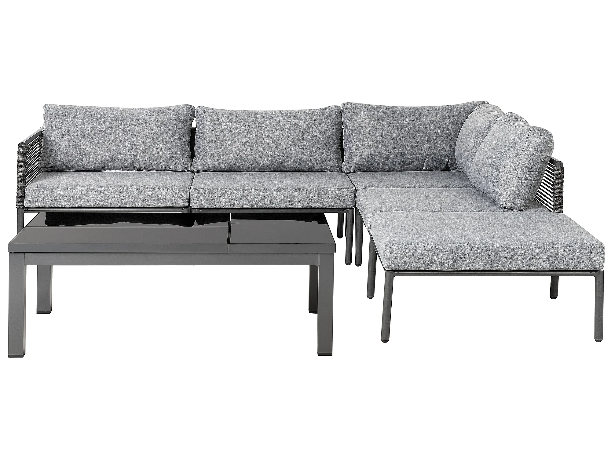 Aluminium Lounge Gartenmöbel Set 6 Personen mit Couchtisch Auflagen grau Forano