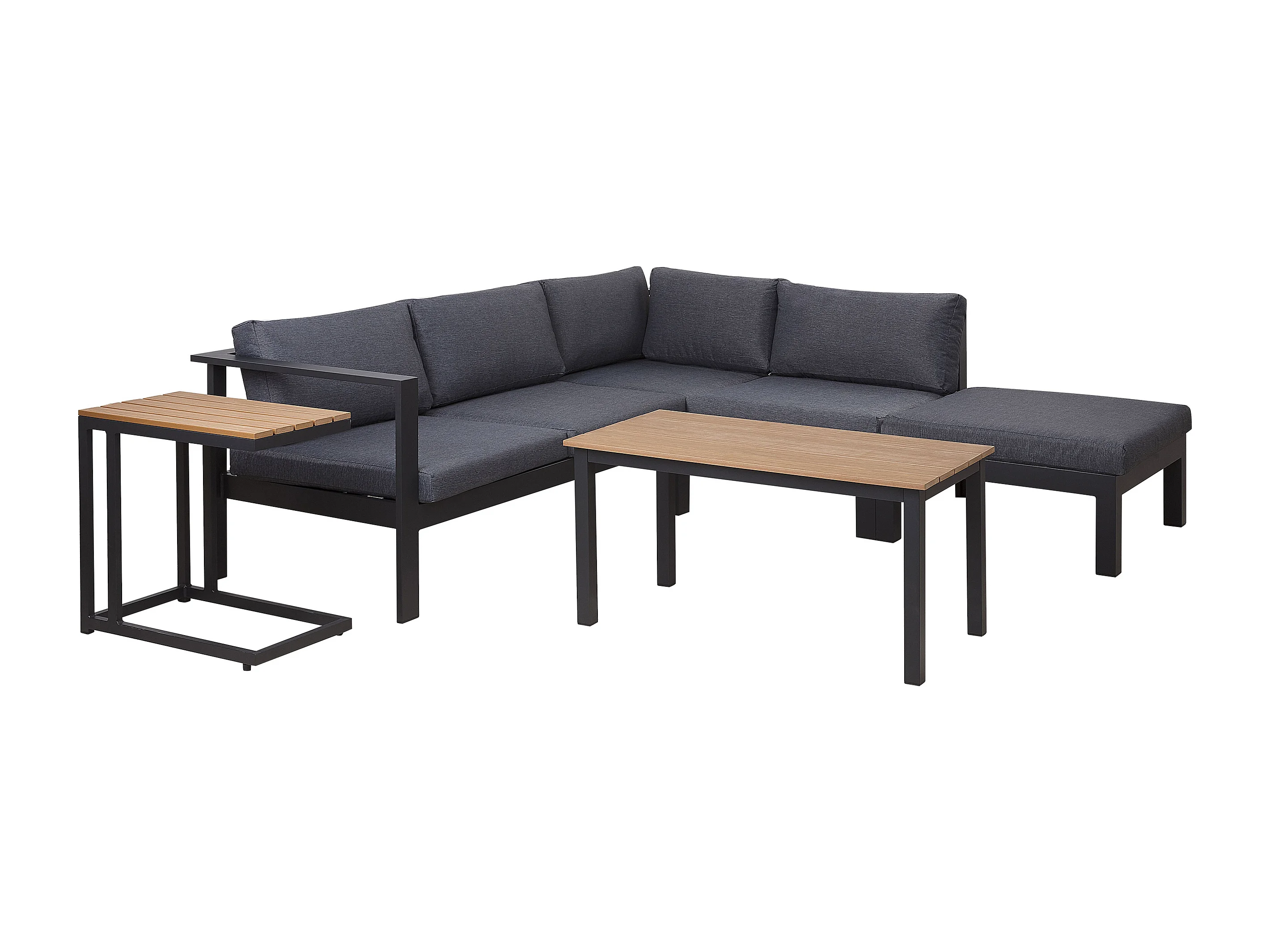 Lounge Set schwarz Kunstholz Ecksofa mit Auflagen grau 2 Couchtische Messina