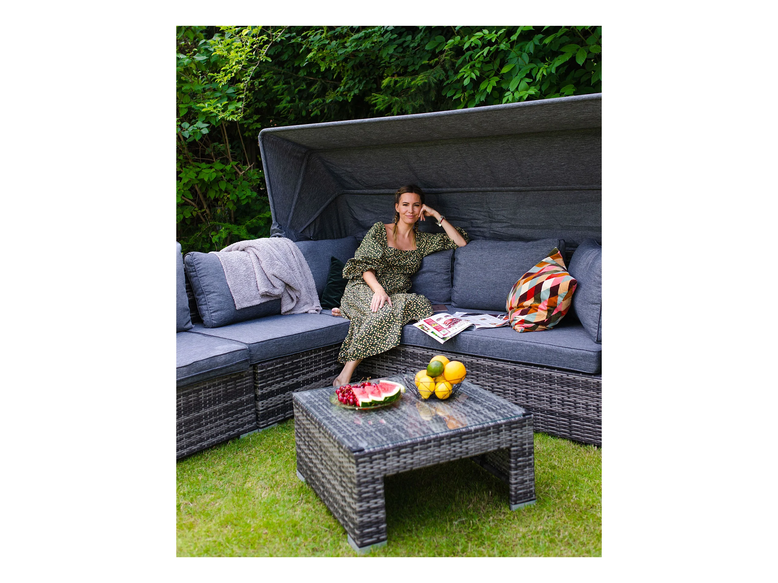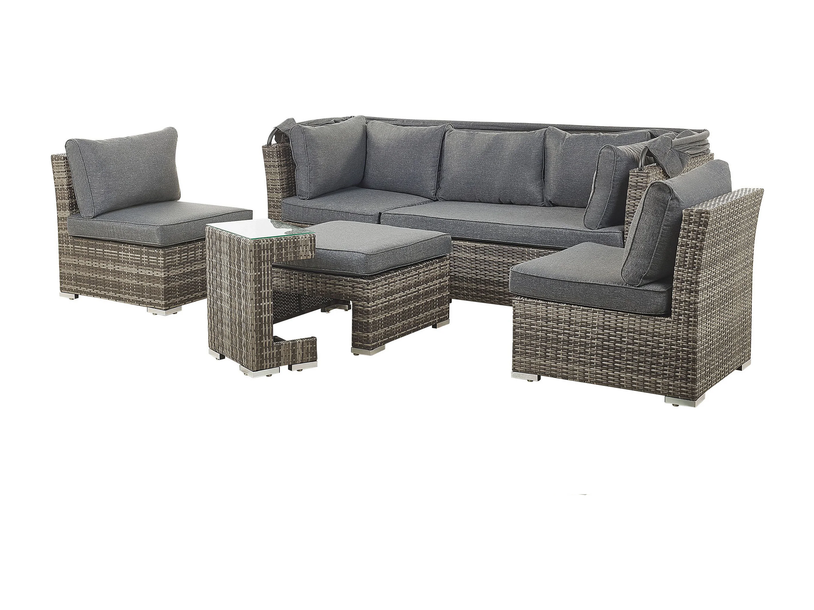 Lounge Set mit Tisch 6-Sitzer CORTE modular Polyrattan Dunkelbraun