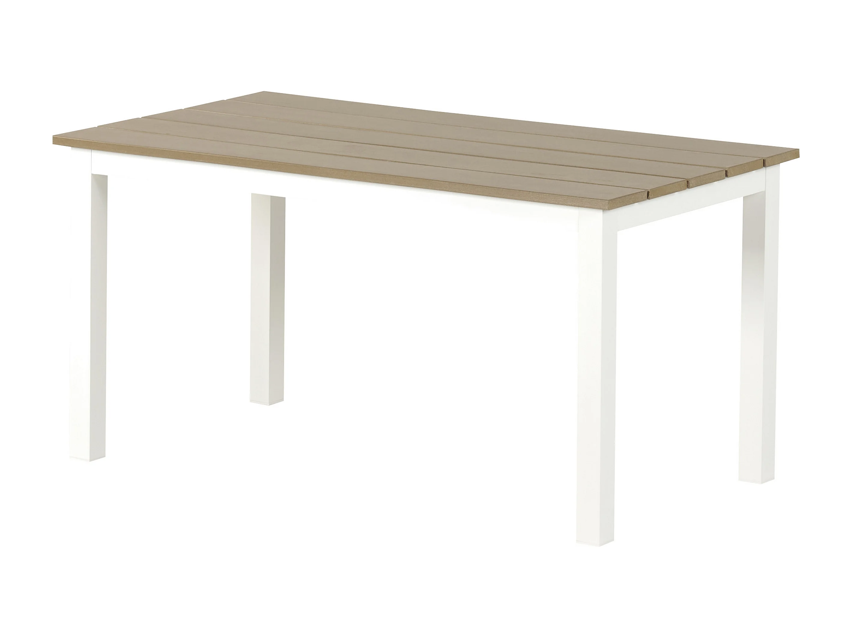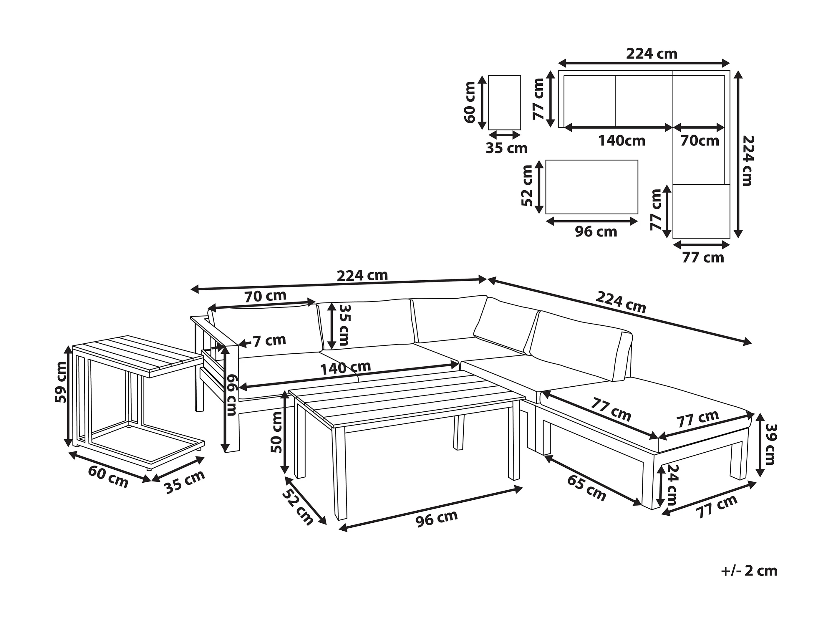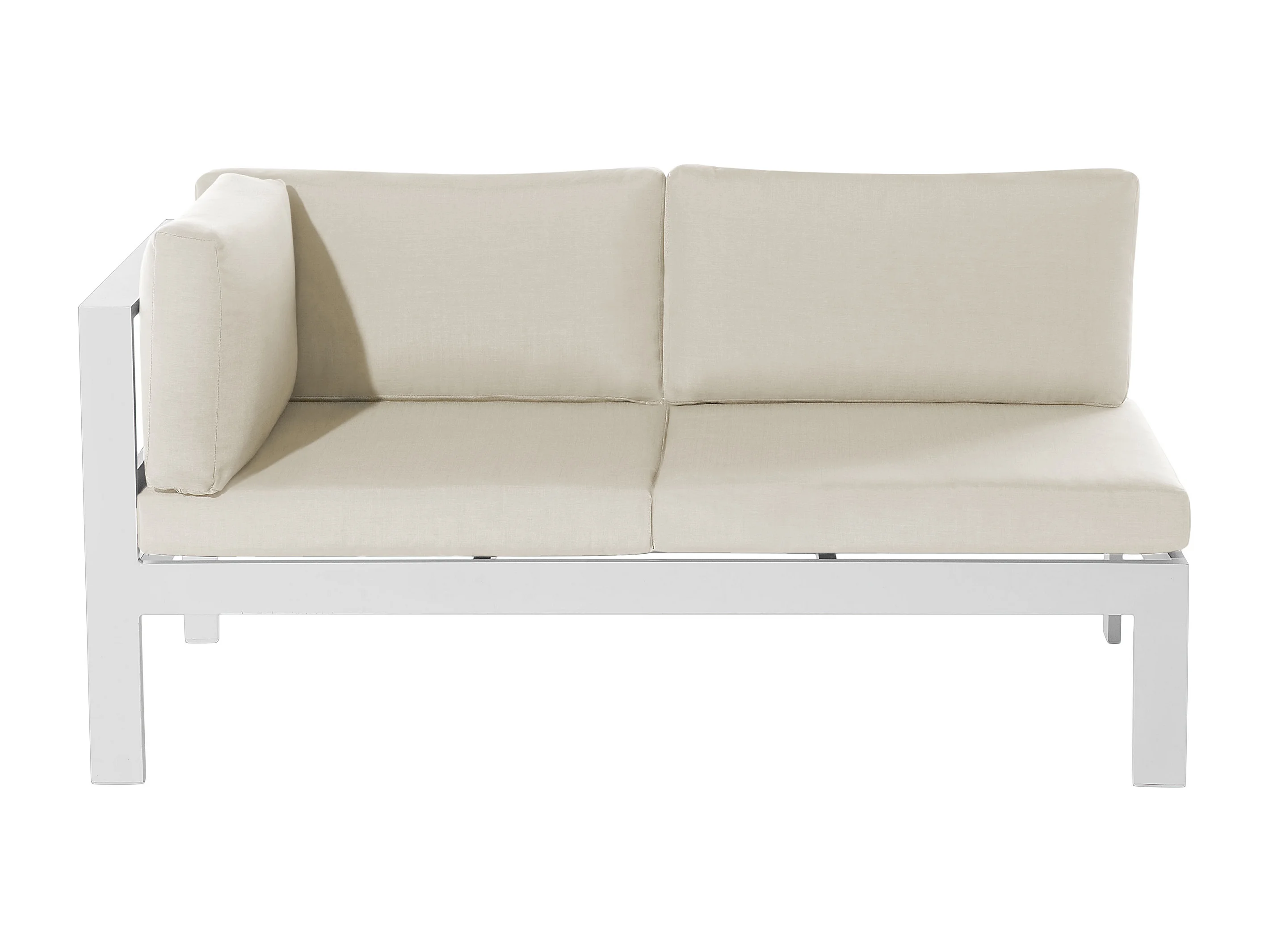 Lounge Set weiß Kunstholz Ecksofa mit Auflagen beige 2 Couchtische Messina