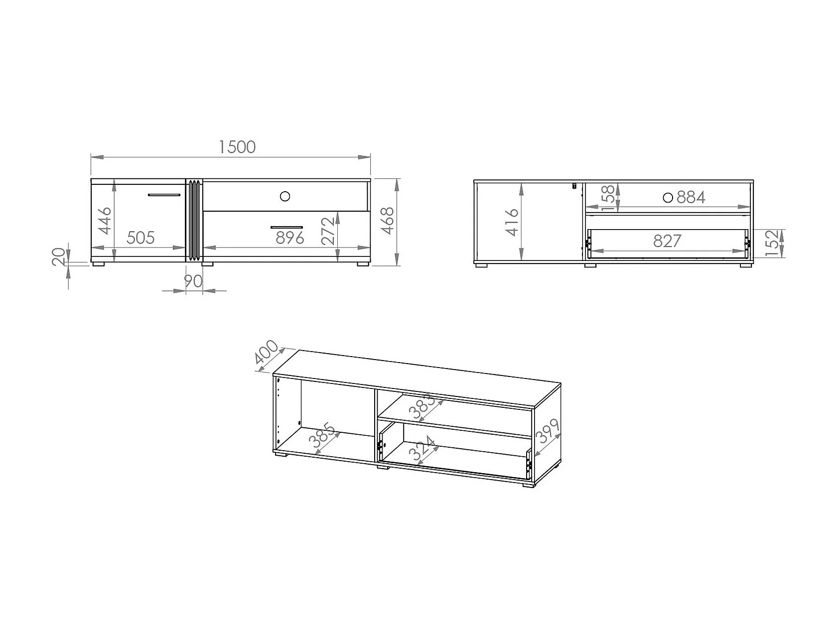 LOWBOARD Adagio weiß Hochglanz / Eiche castello 150 / 42 / 47cm