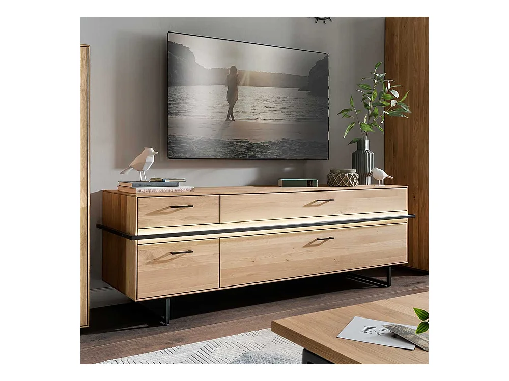 Lowboard Asteiche aus Massivholz vier Schubladen