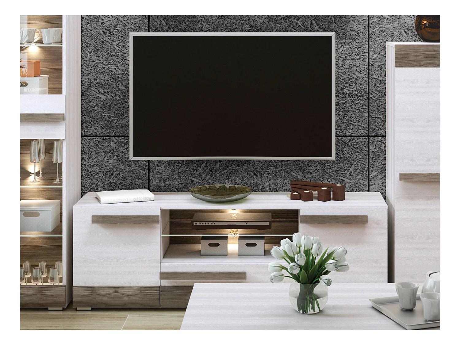 LOWBOARD Blanco Pinie weiß / grau 165 / 42 / 55cm
