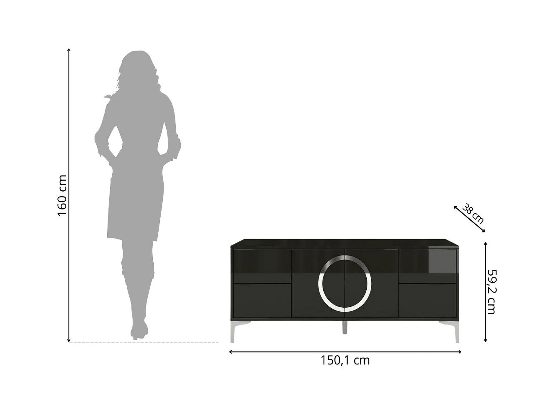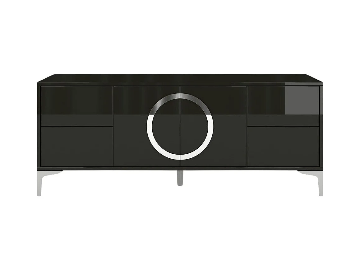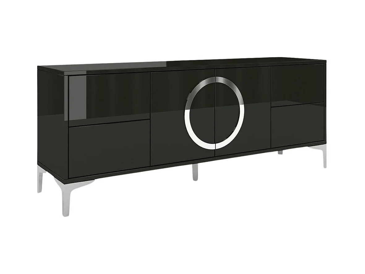 Lowboard Eva, schwarz, silberne akzente, hochglanz