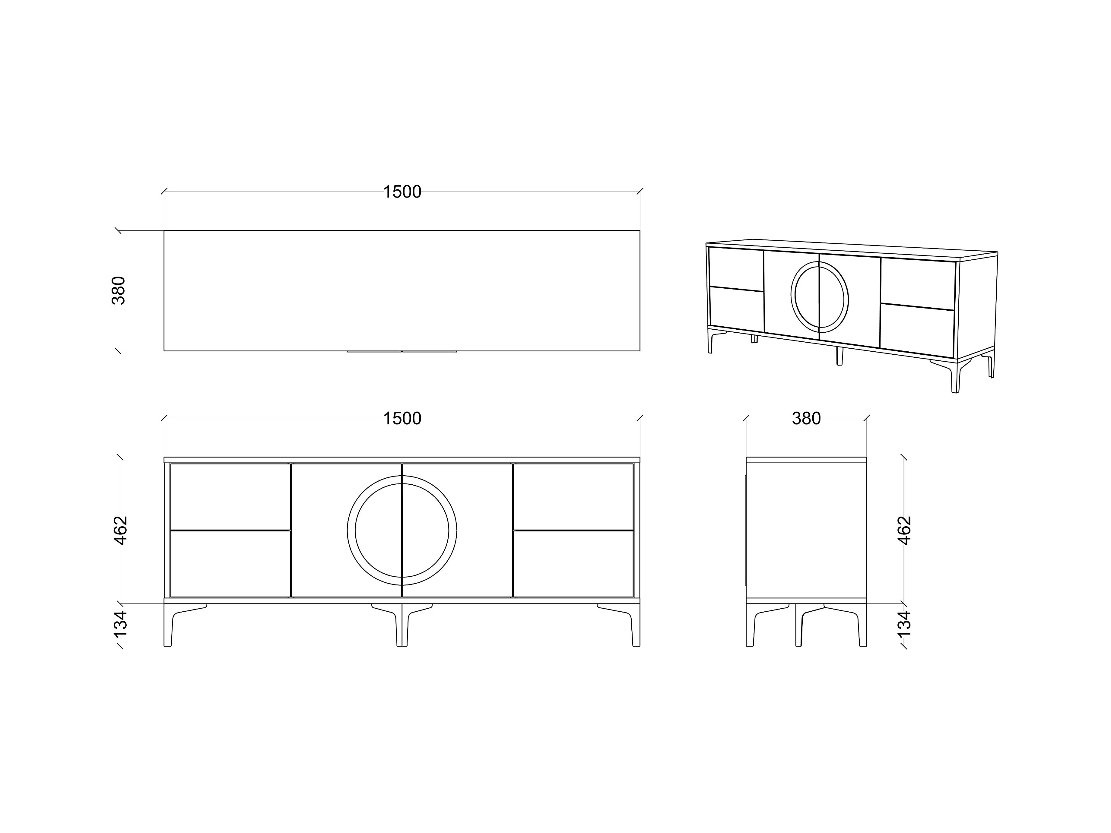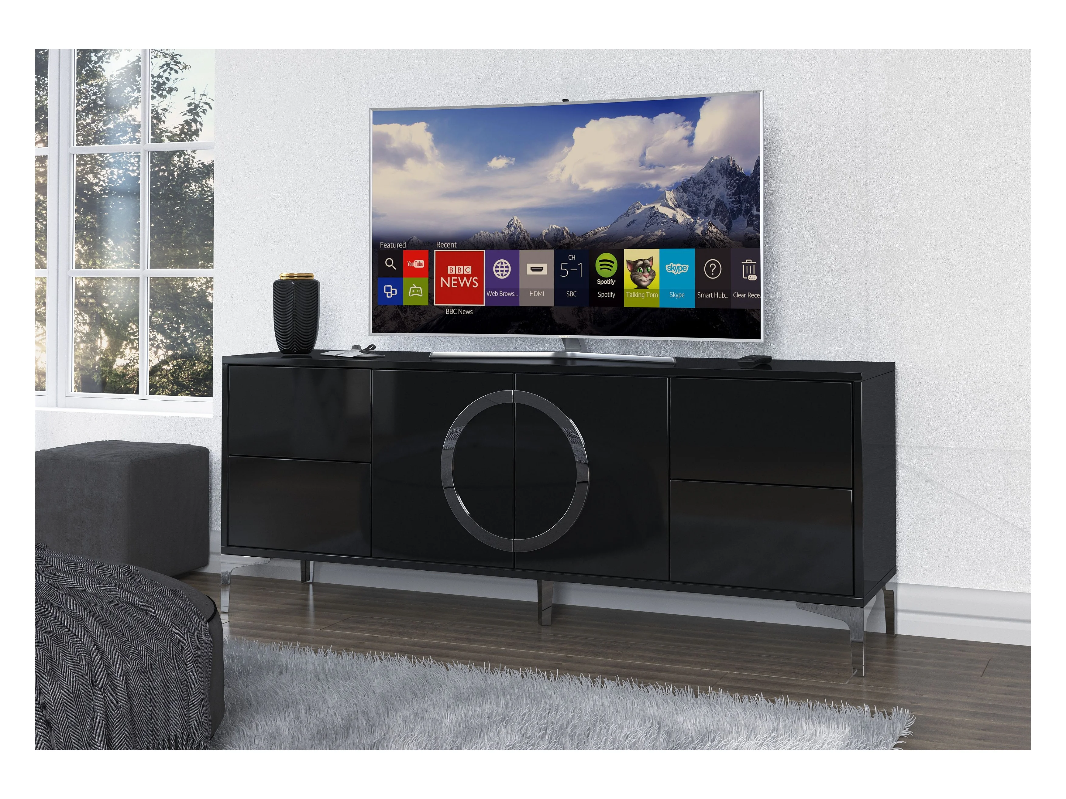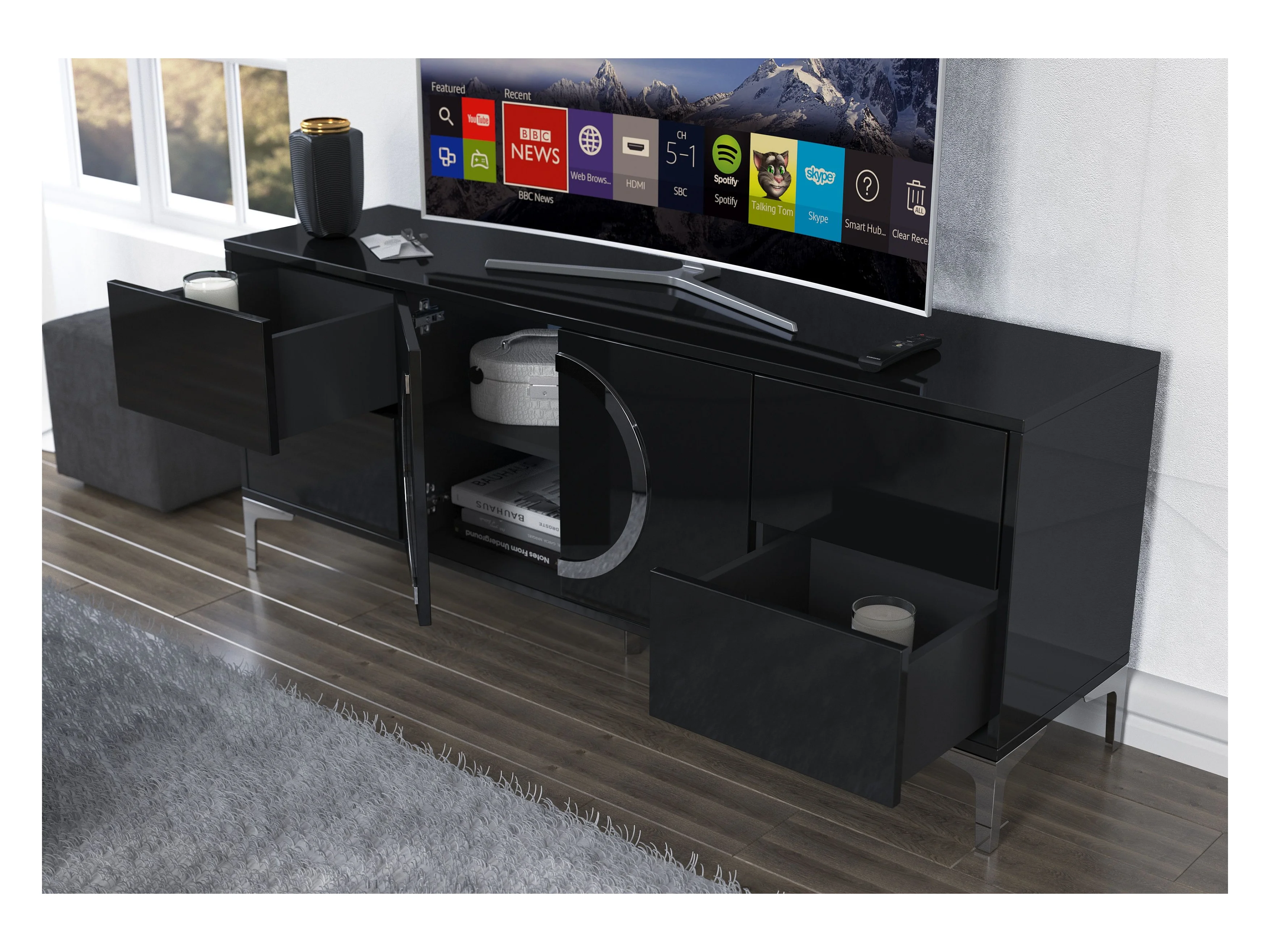 Lowboard Eva, schwarz, silberne akzente, hochglanz