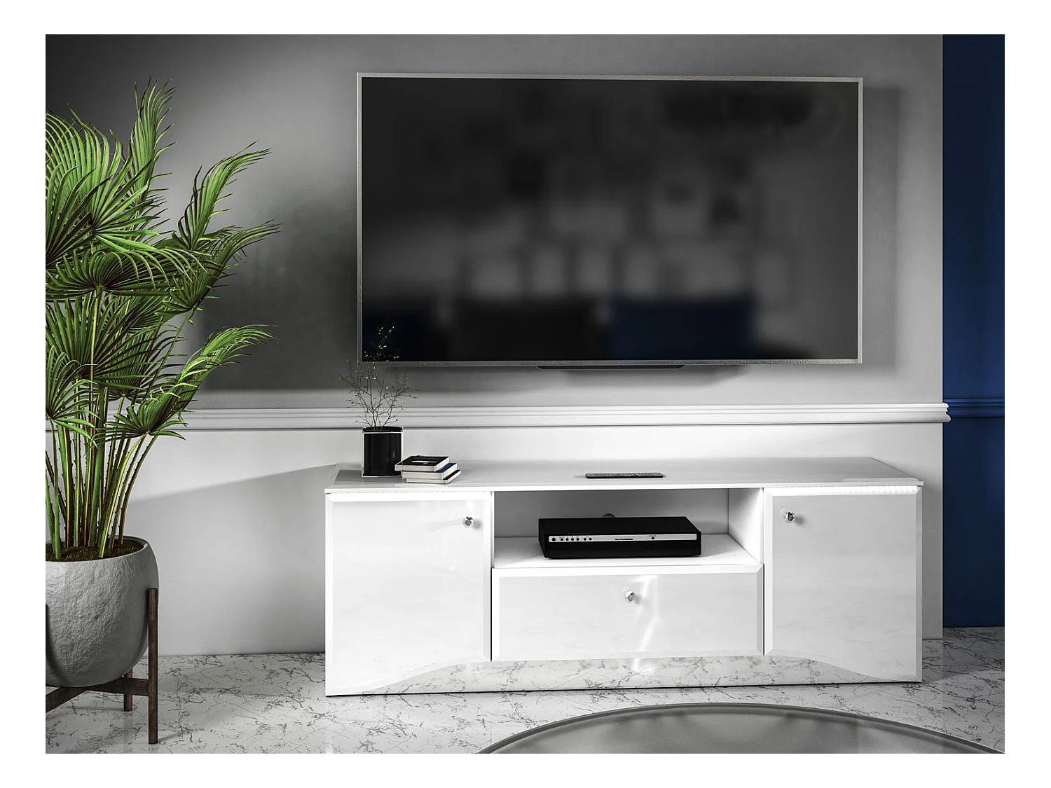 LOWBOARD Glamour weiß / weiß hochglanz 160 / 41 / 56cm