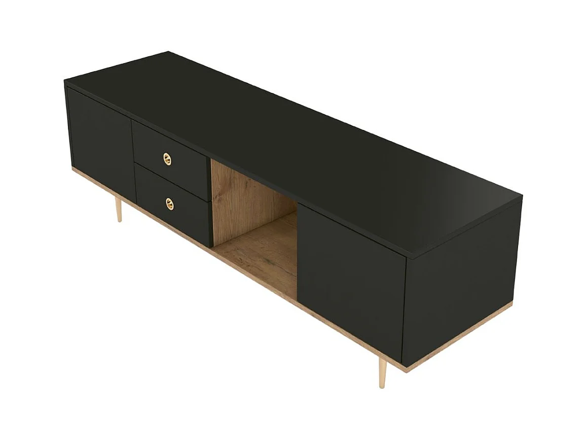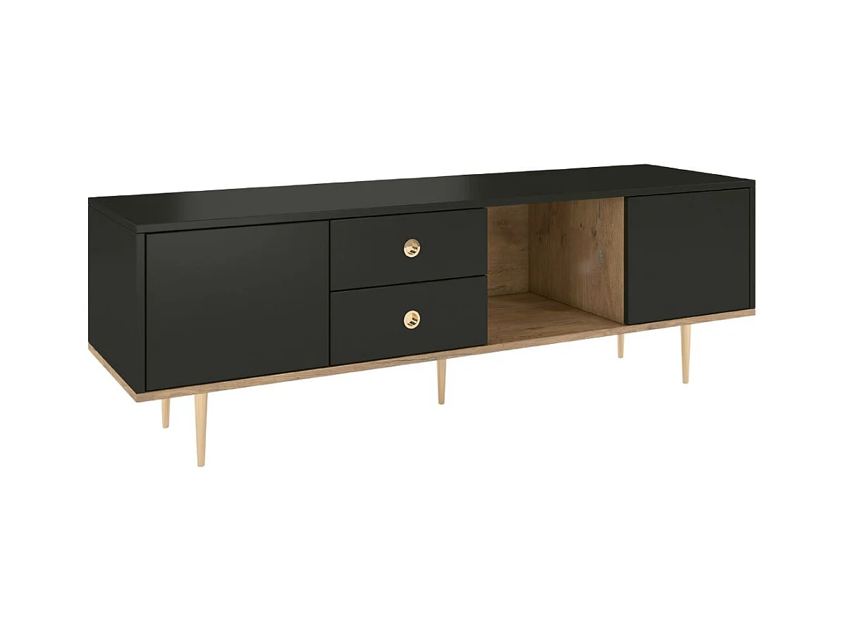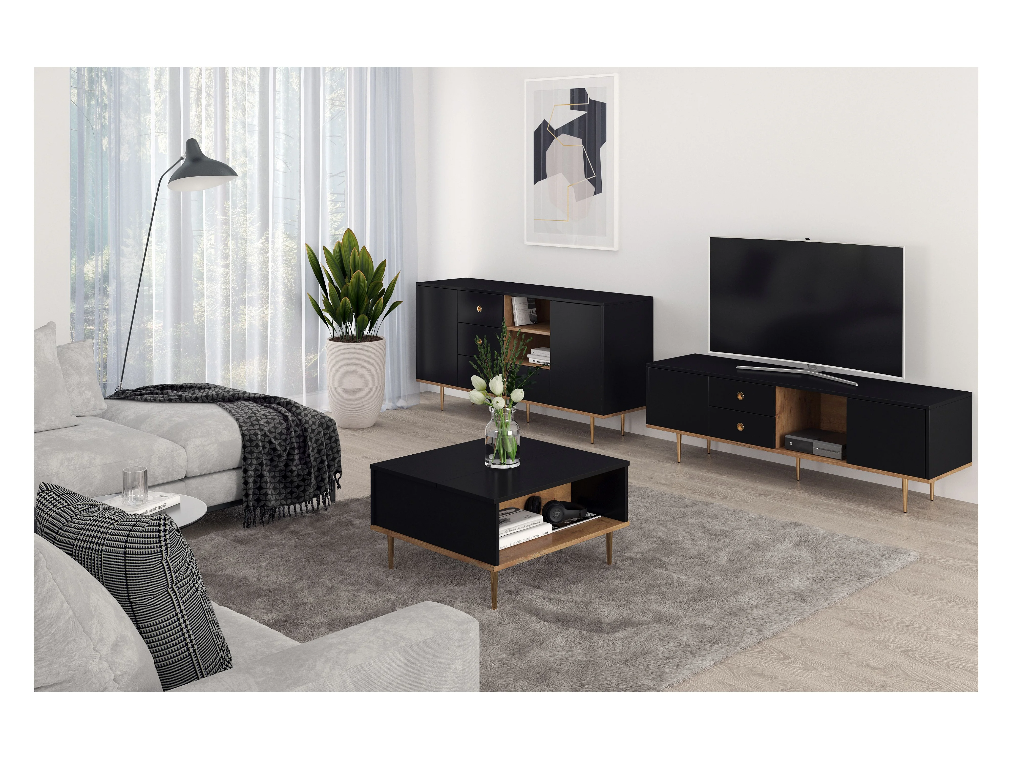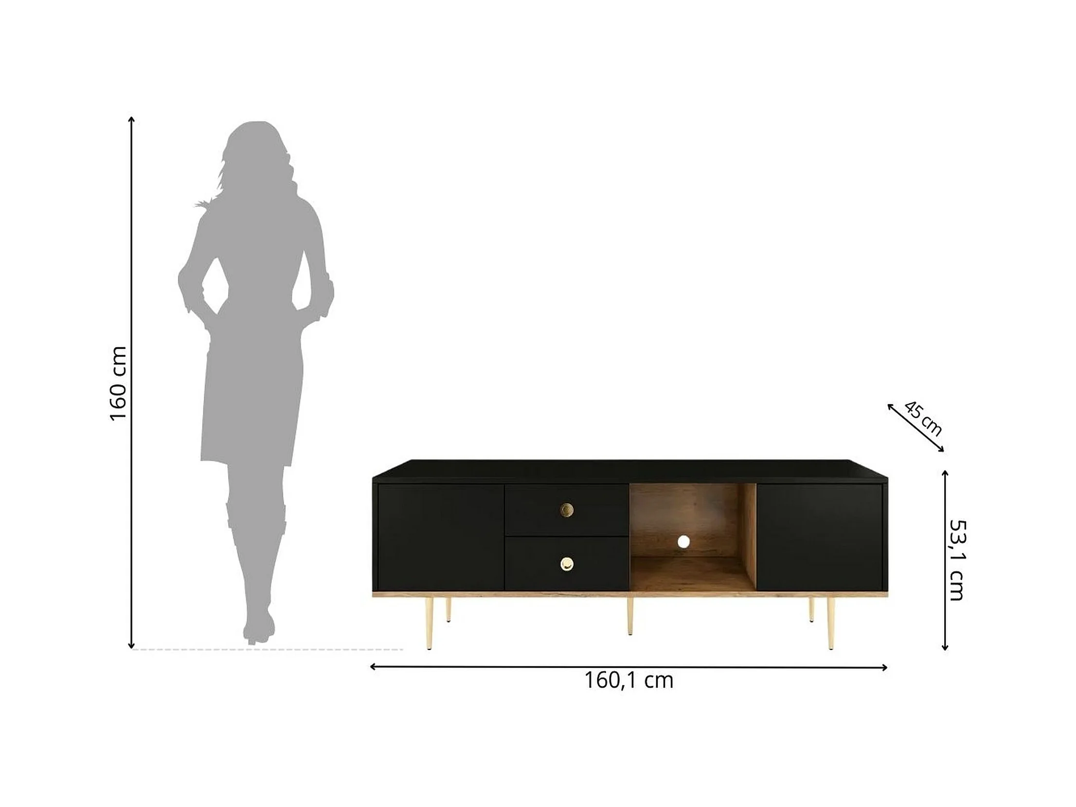 Lowboard Harmoni, schwarz, eiche, goldene details