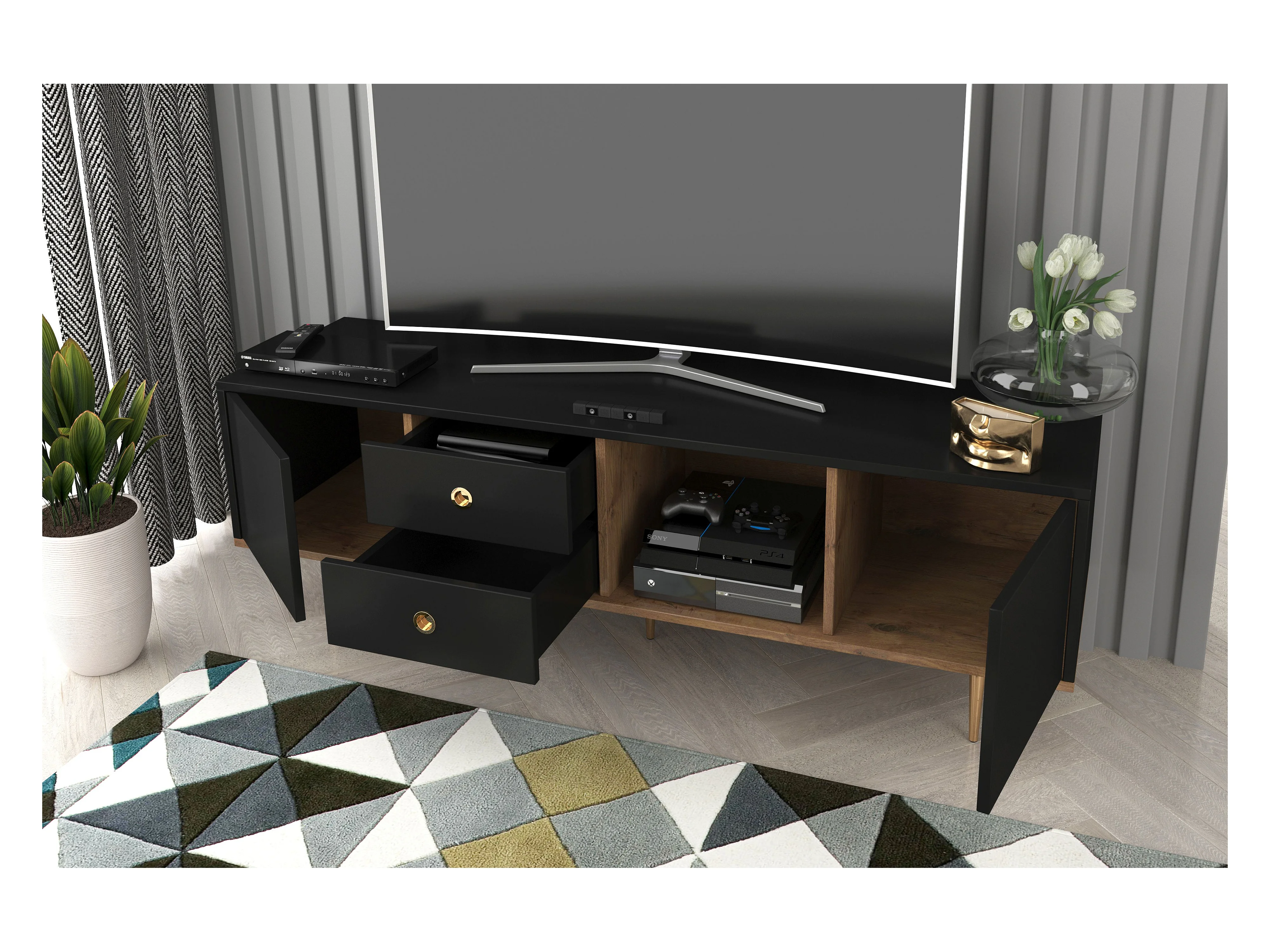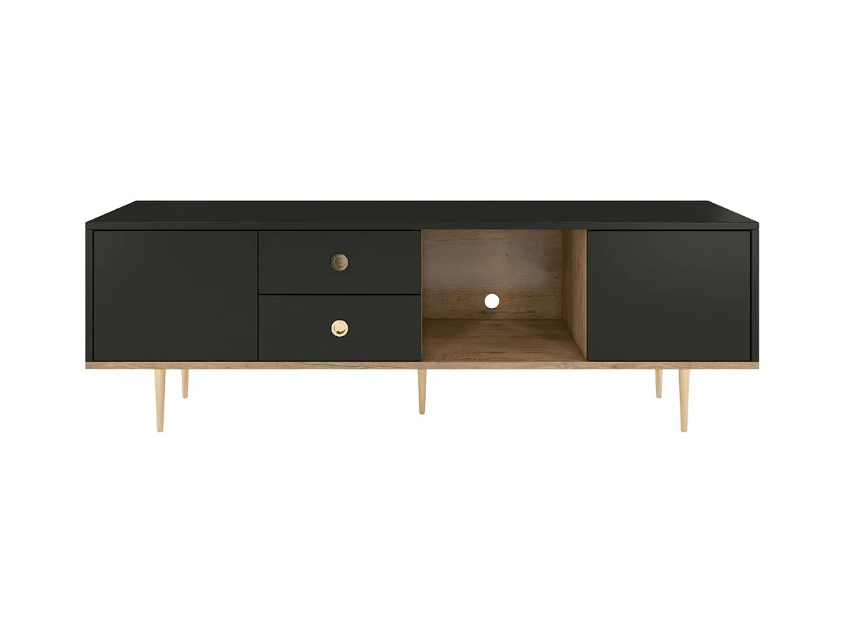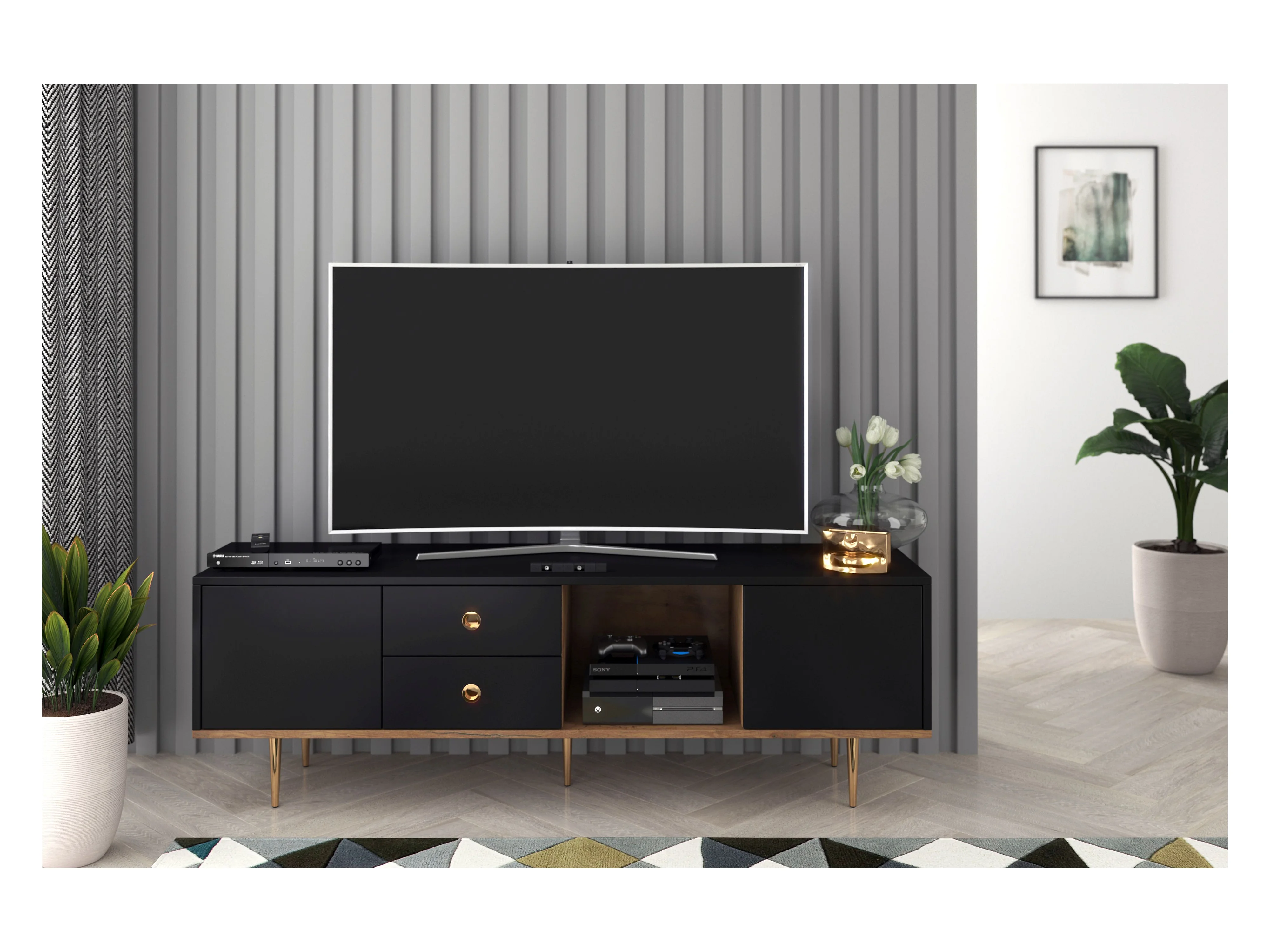 Lowboard Harmoni, schwarz, eiche, goldene details