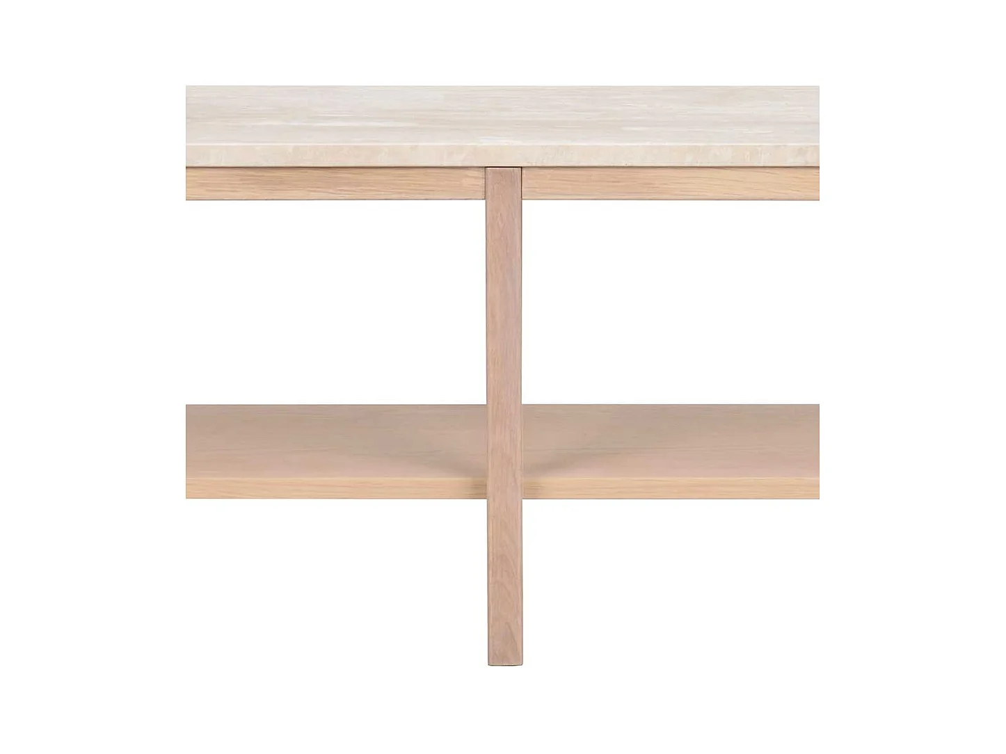 Lowboard in Holz White Wash und Marmorplatte in Beige 45 cm hoch