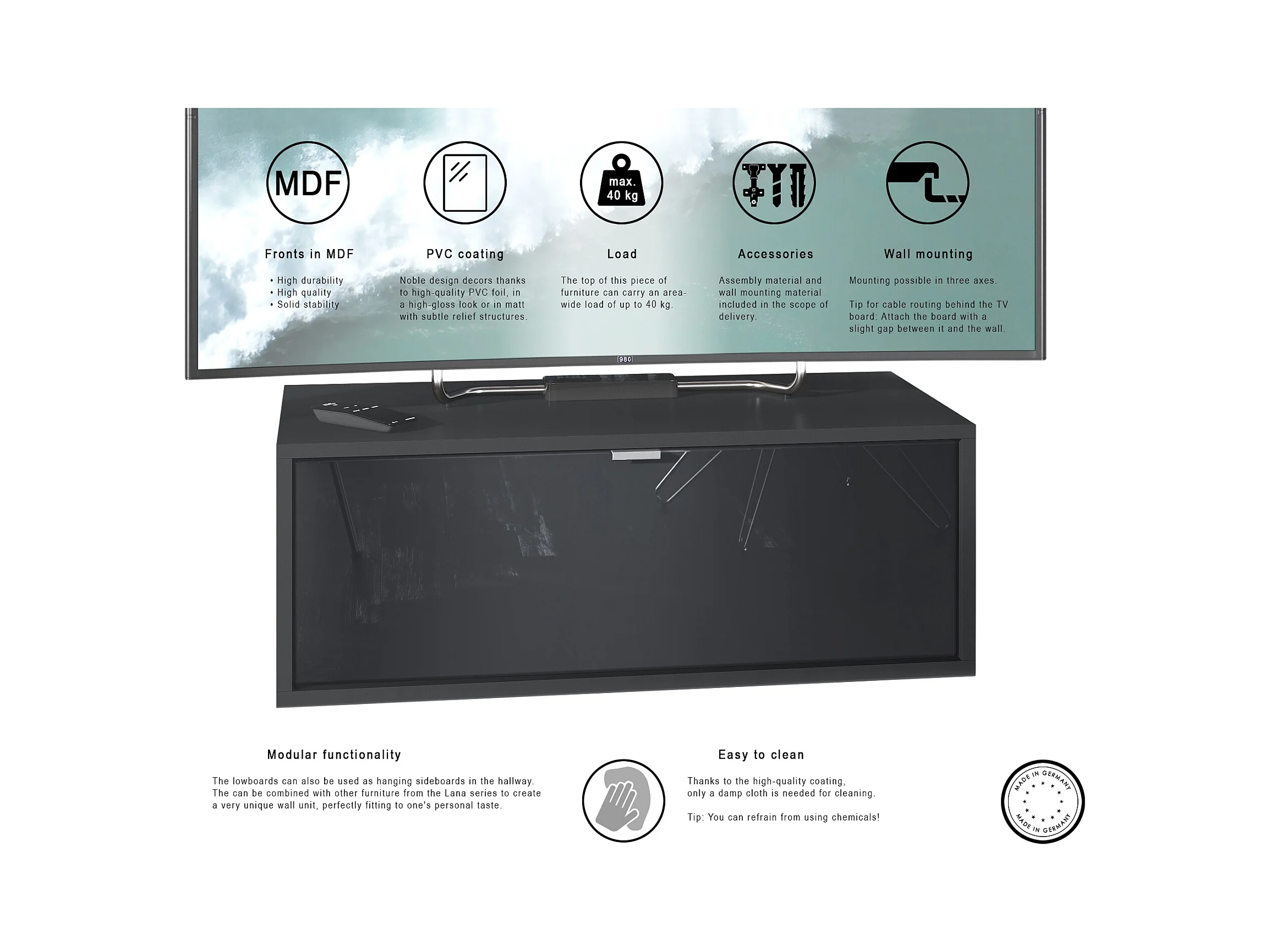 LOWBOARD Lana Fronten in Grau Hochglanz
