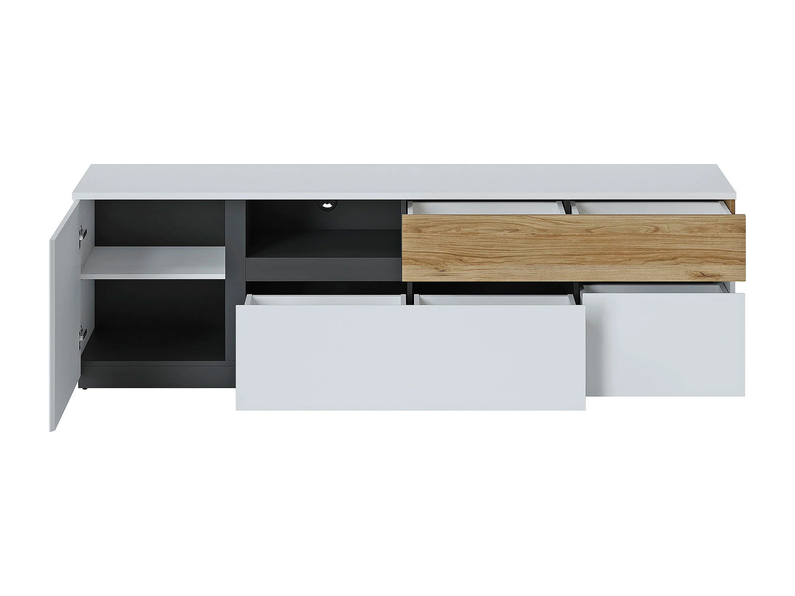 LOWBOARD Novena weiß / schwarz / Catania Eiche 210,5 / 40 / 63cm