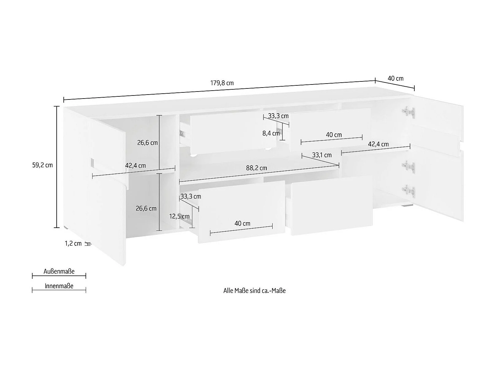 LOWBOARD Rimini Atelier hell / Kastanie Breslau 180 / 40 / 59cm
