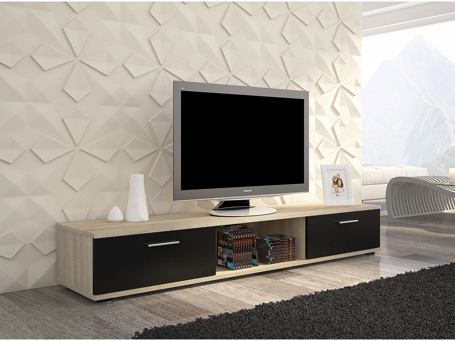 LOWBOARD Sella 175,5 / 40 / 26cm Sonoma Eiche / schwarz matt