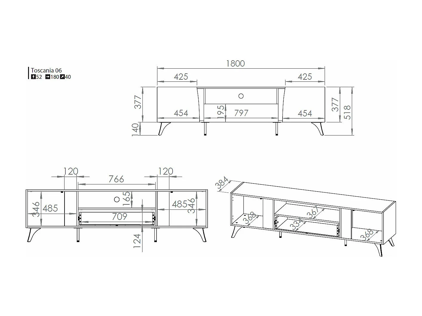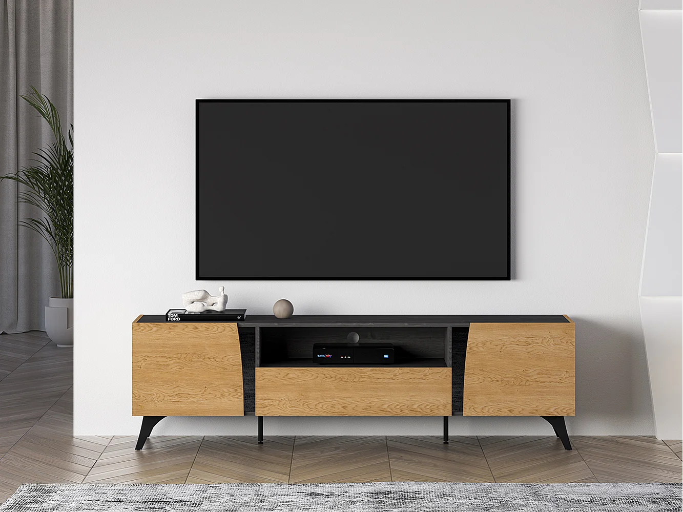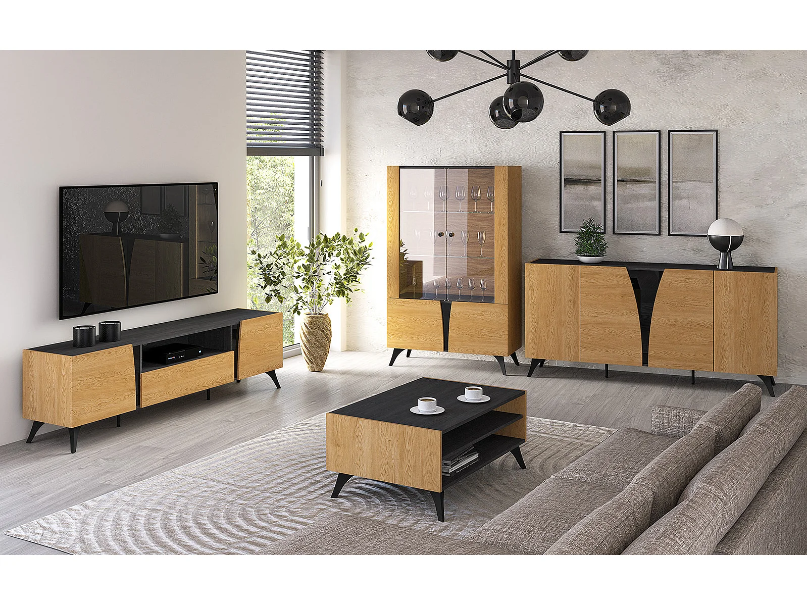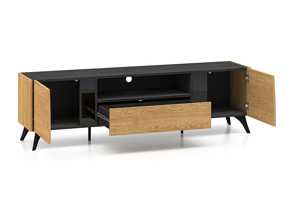 LOWBOARD Toscania Eiche / Schwarz 180 / 40 / 52cm