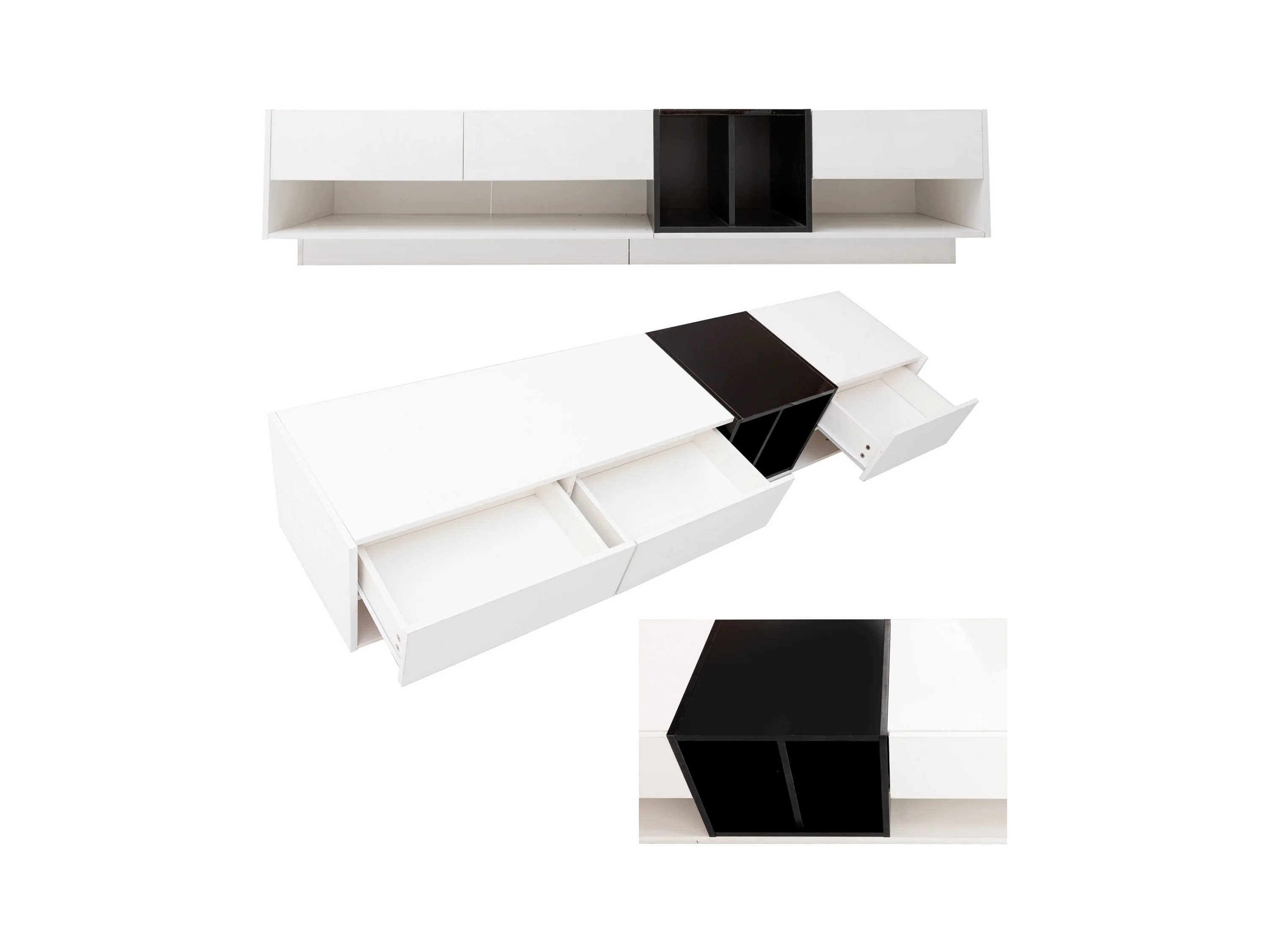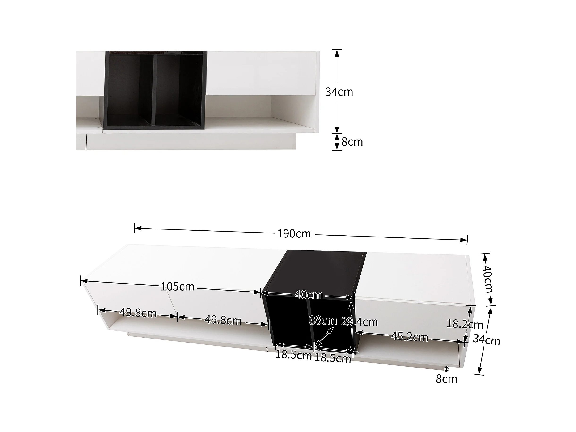Lowboard TV-Schrank Hochglanz-Weiß & Schwarz 190 x 40 x 42cm TV-Board Fernsehschrank Kommode Farbblockierendes Design