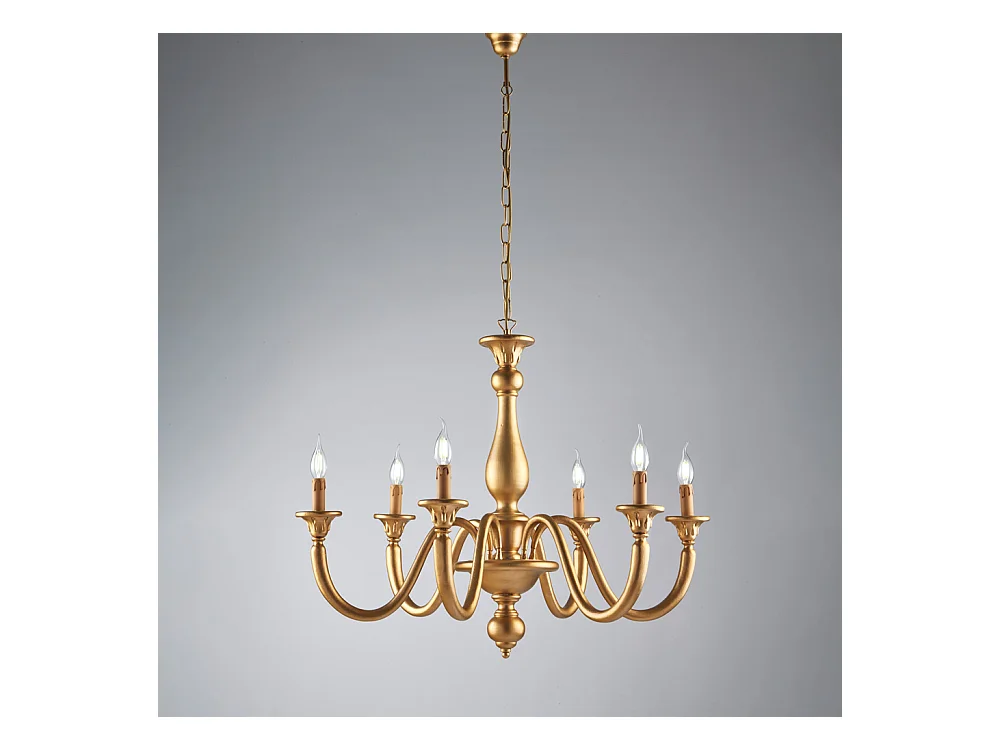 Lucca - Kronleuchter aus Holz in Antikgold 6 Lichter 129 - Ø86 - BL271-6-OR