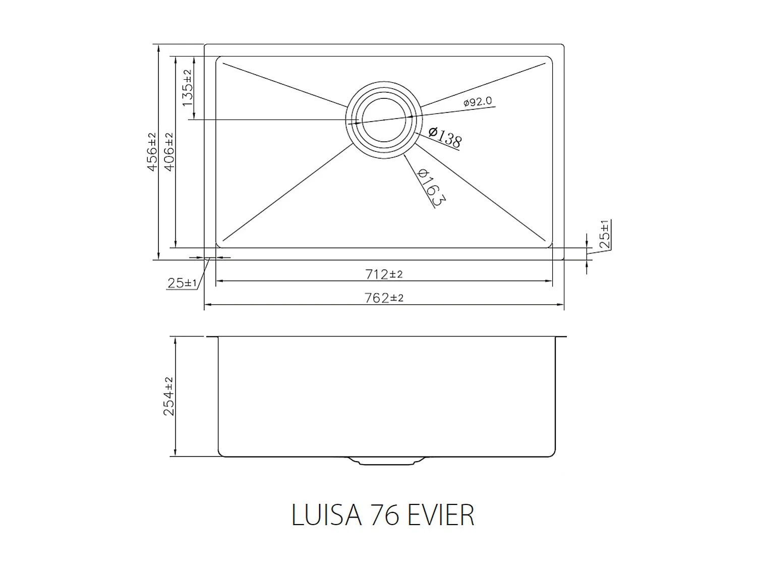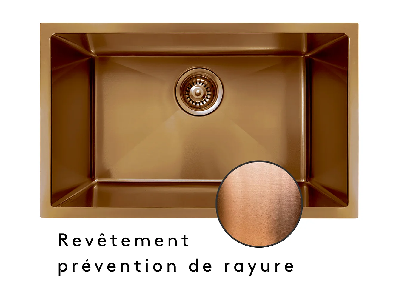 Luisa Spüle 1 großes Becken allein 76x45 aus Edelstahl Kupfer gebürstet Essebagno