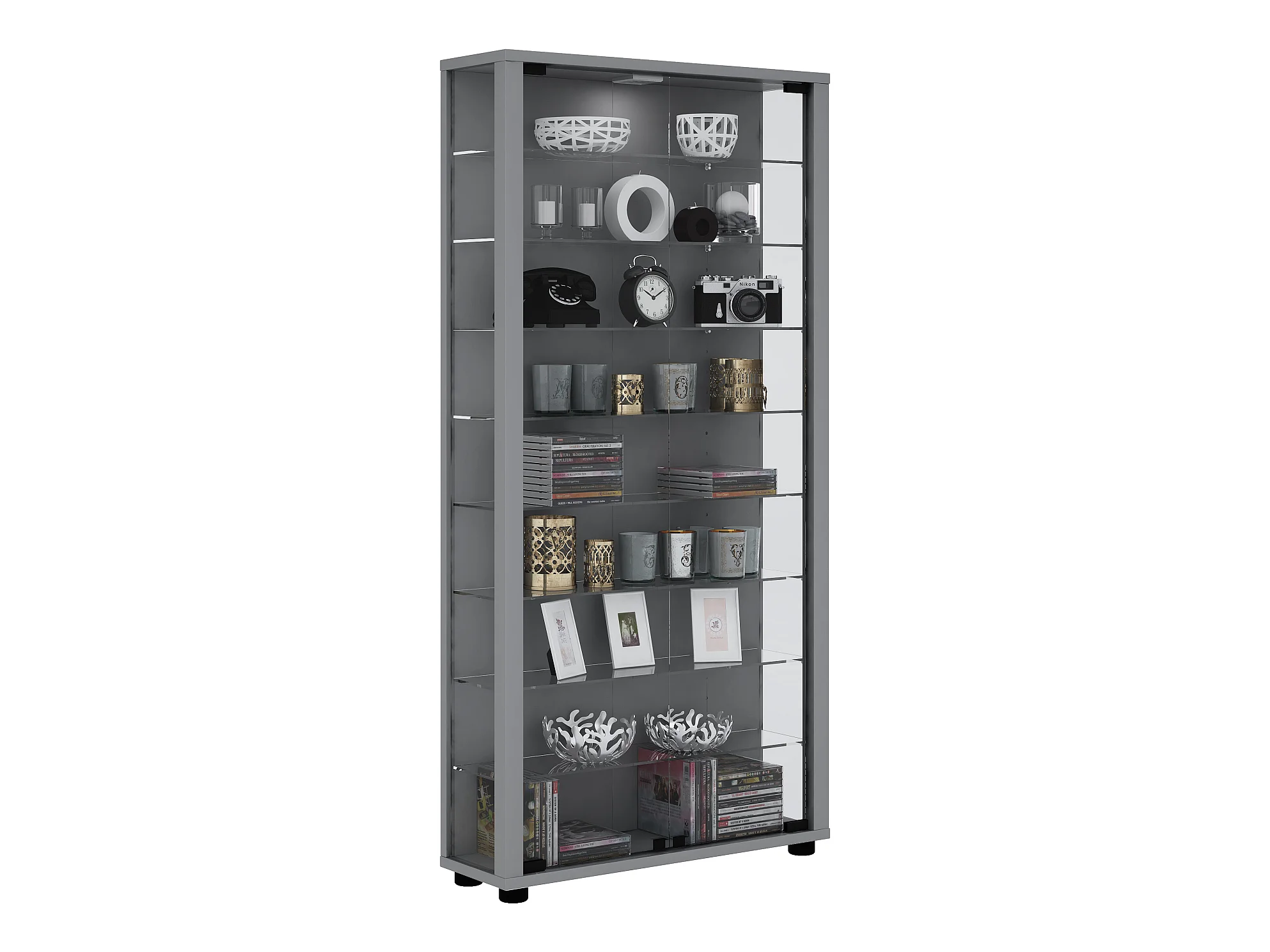Lumo Maxi Vitrinenschrank 2 Glastüren, Glasvitrinen mit LED-Leuchten Silberfarbig.