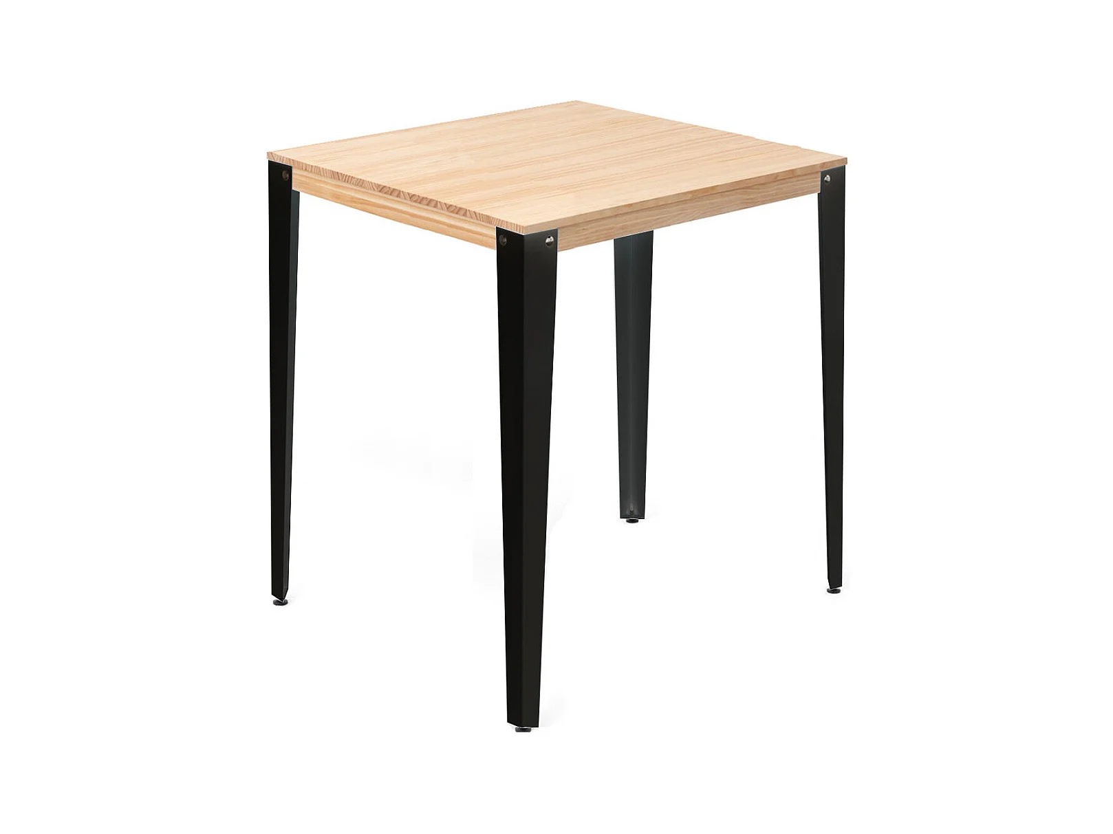 Lunds Quadratischer Bistrotisch 80x80x110cm Schwarz, Massives Kiefernholz mit natürliches Finish, Scandinavisher Stil, Box Furniture