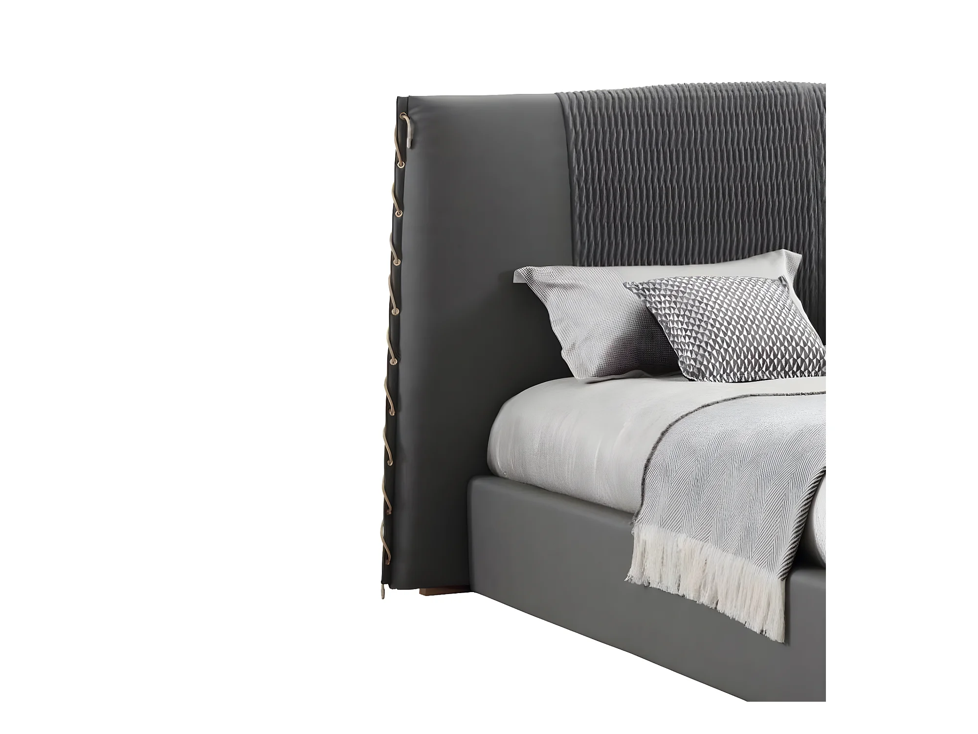 Luxus Bett Holz Betten Bettrahmen Grau Doppel Bettgestell Betten (1-tlg., 1x Bett)