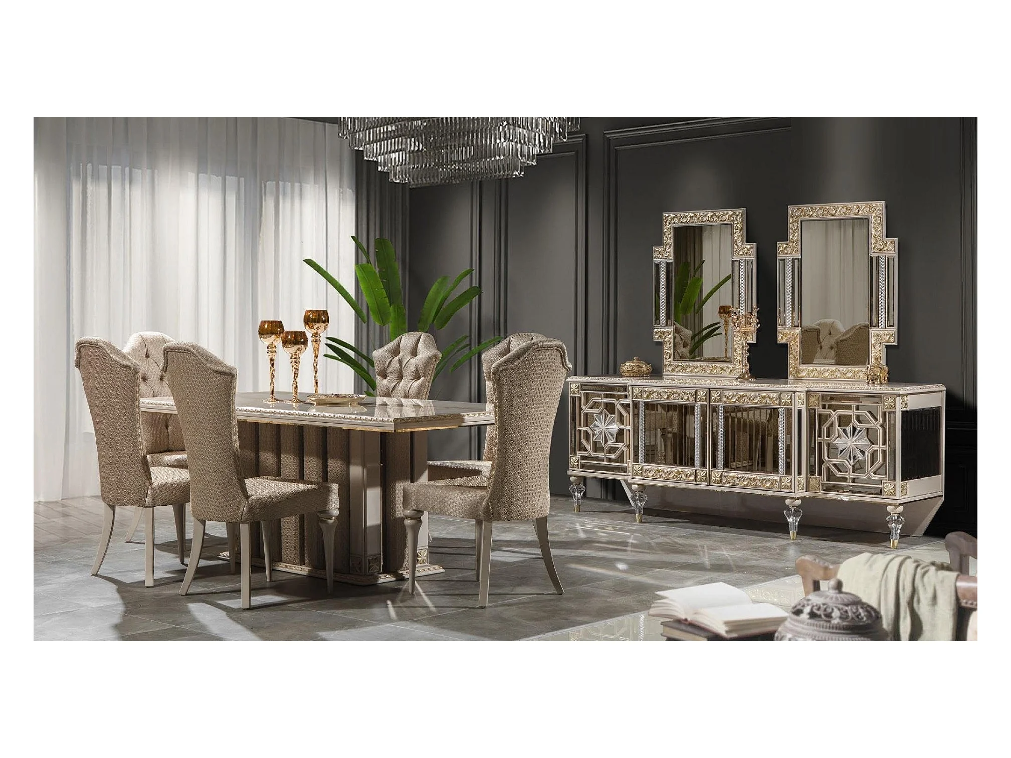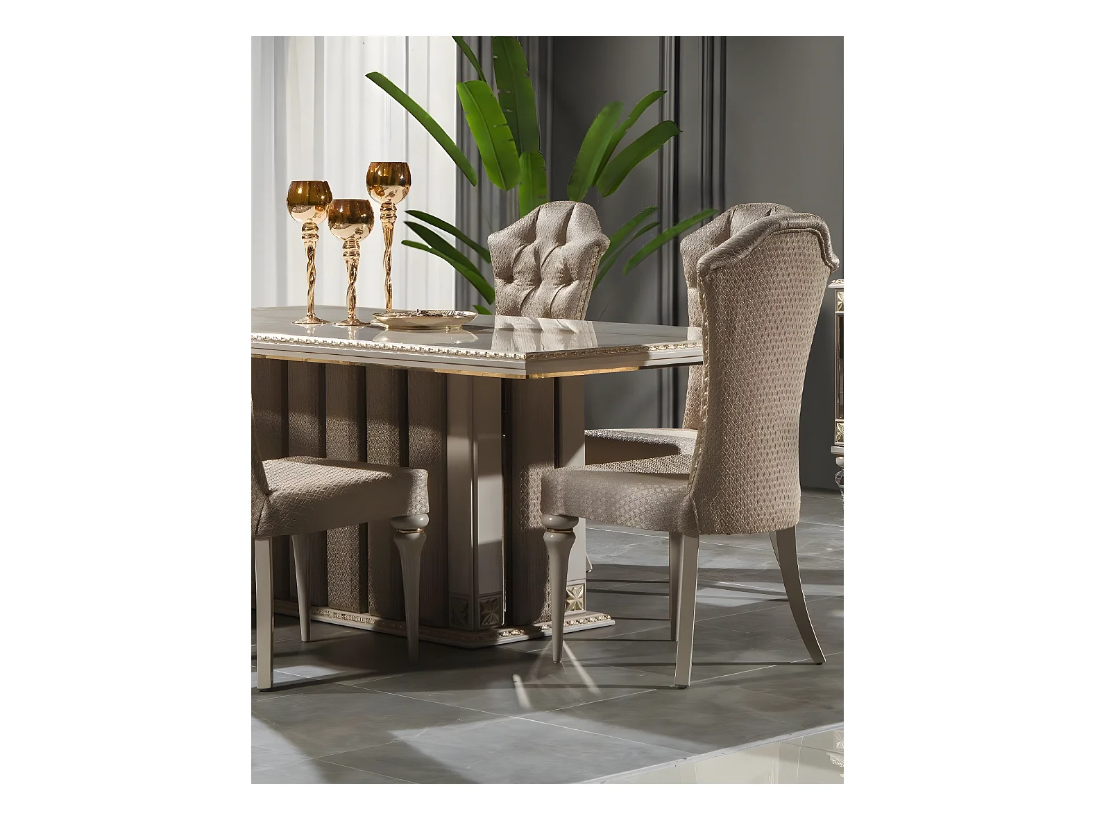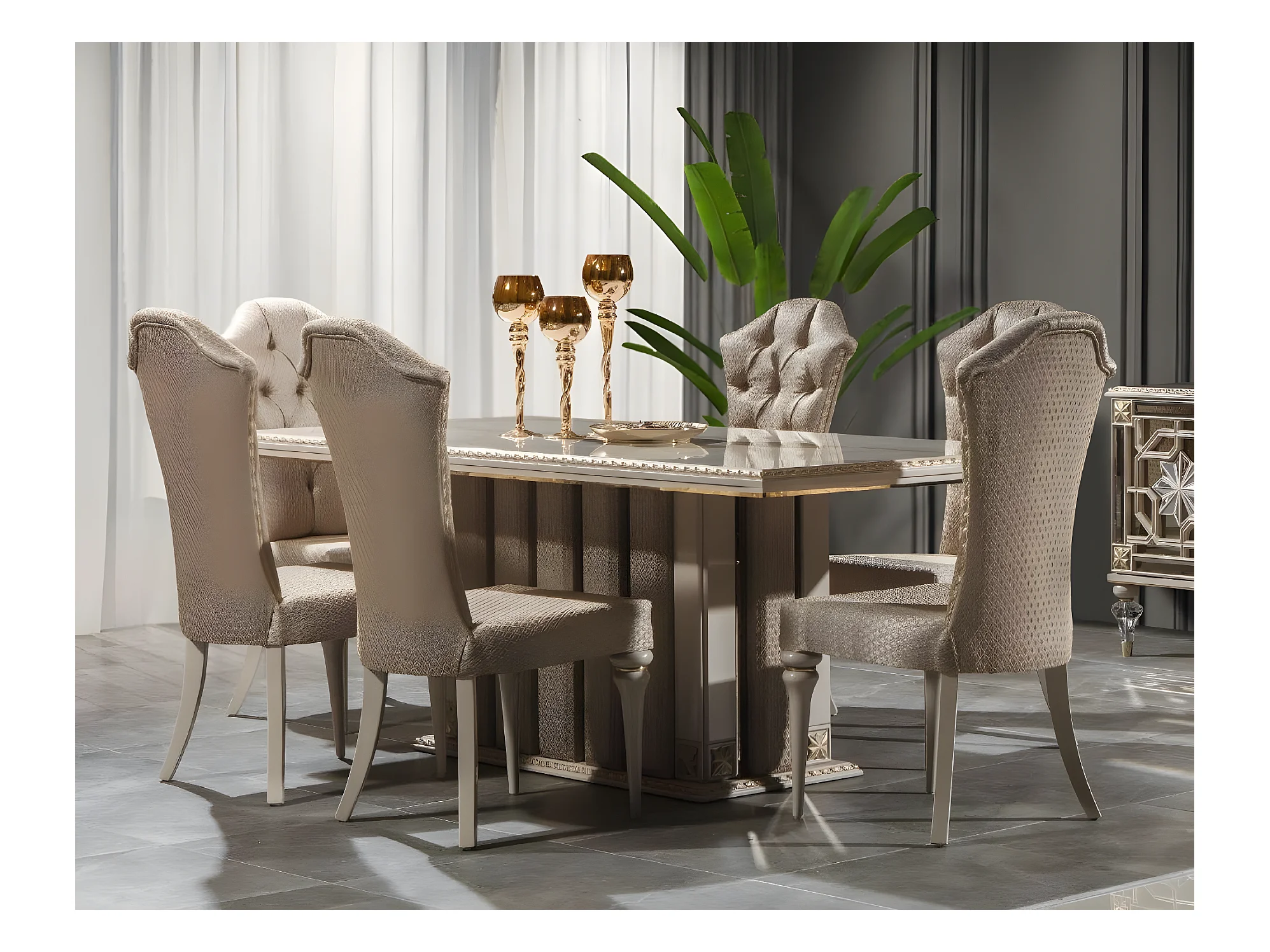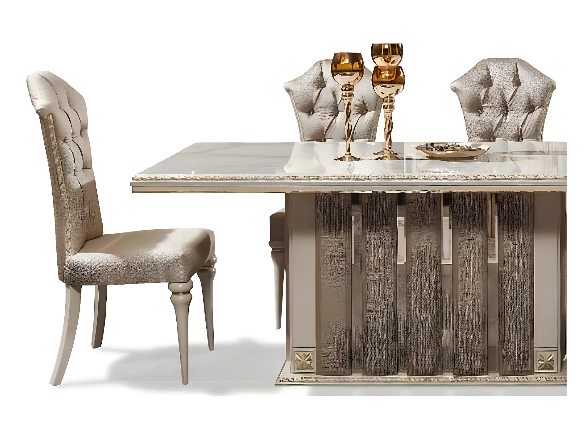 Luxus Essgruppe Essecke Esszimmer Esstisch Stühle Beige Set Holz 8tlg