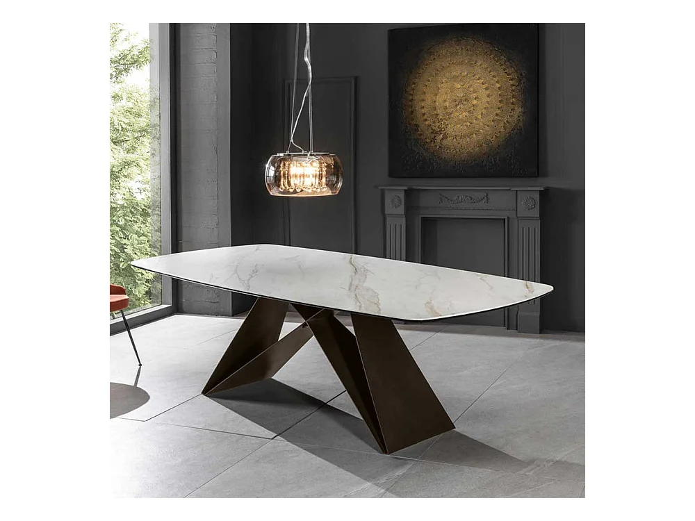Luxus Esszimmer Tisch in Creme und Schwarzbraun Platte aus Glas und Keramik