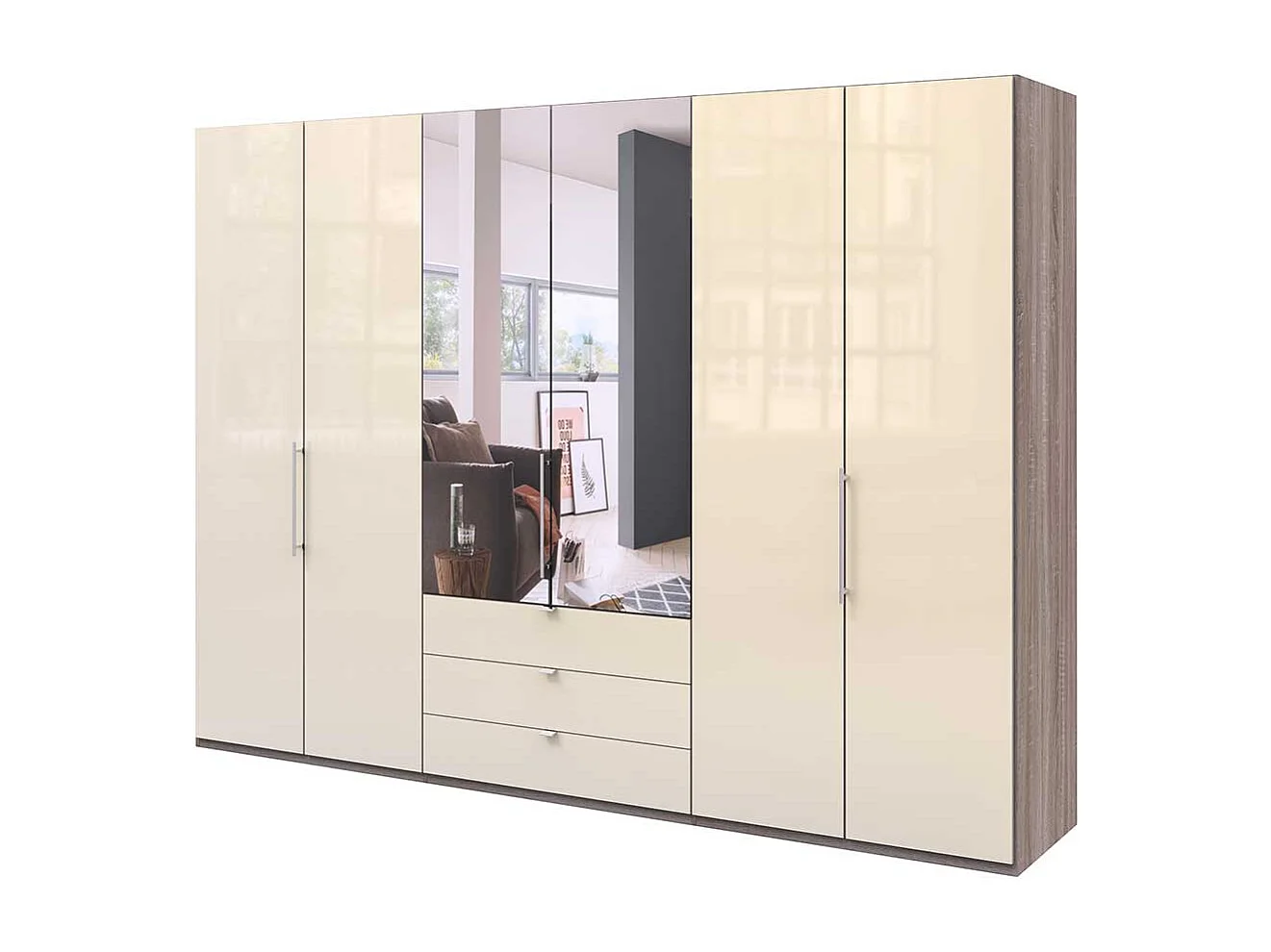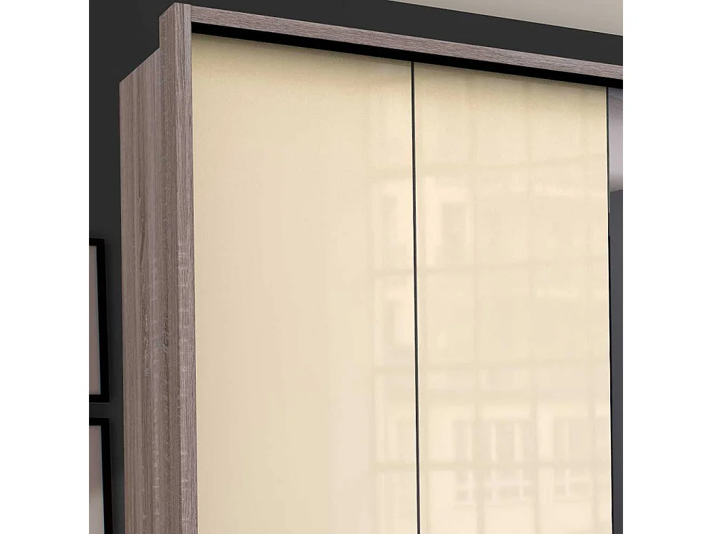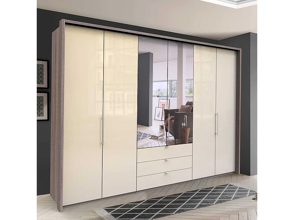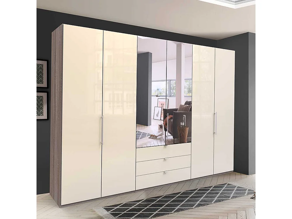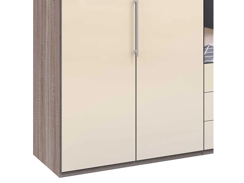 Luxus Kleiderschrank in Cremefarben und Eiche Trüffel Optik Falttüren