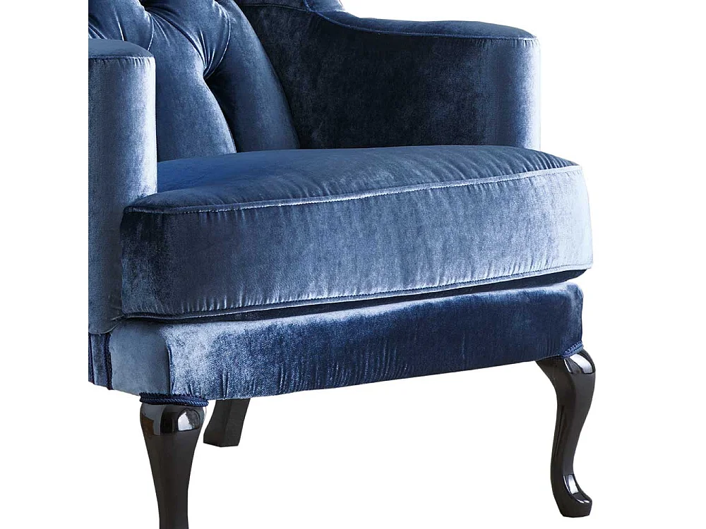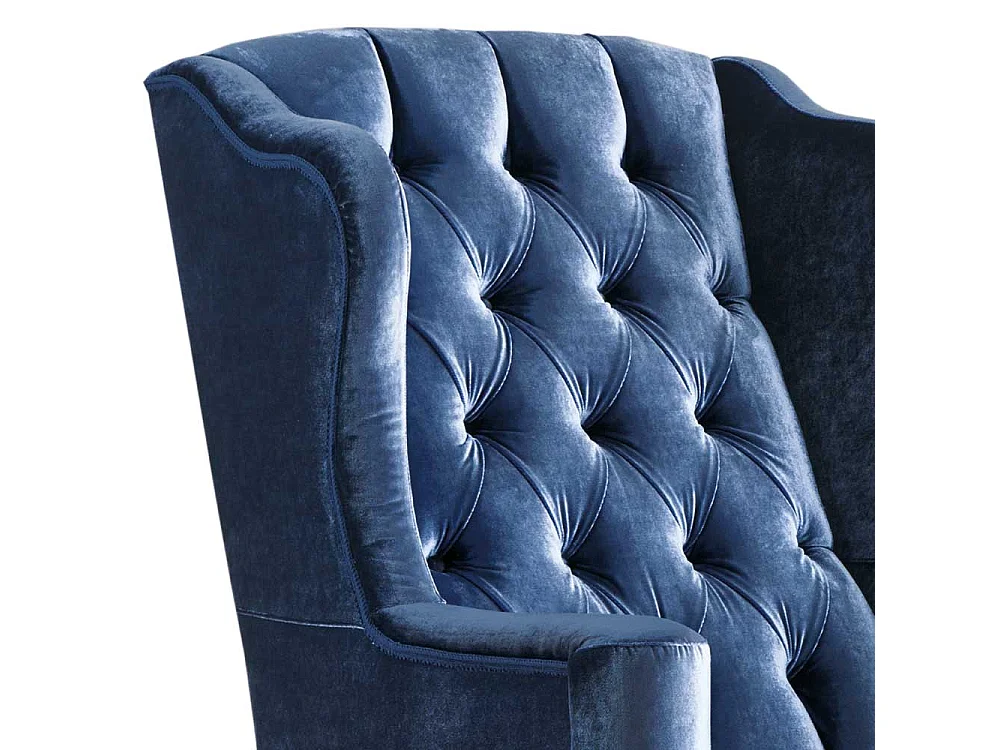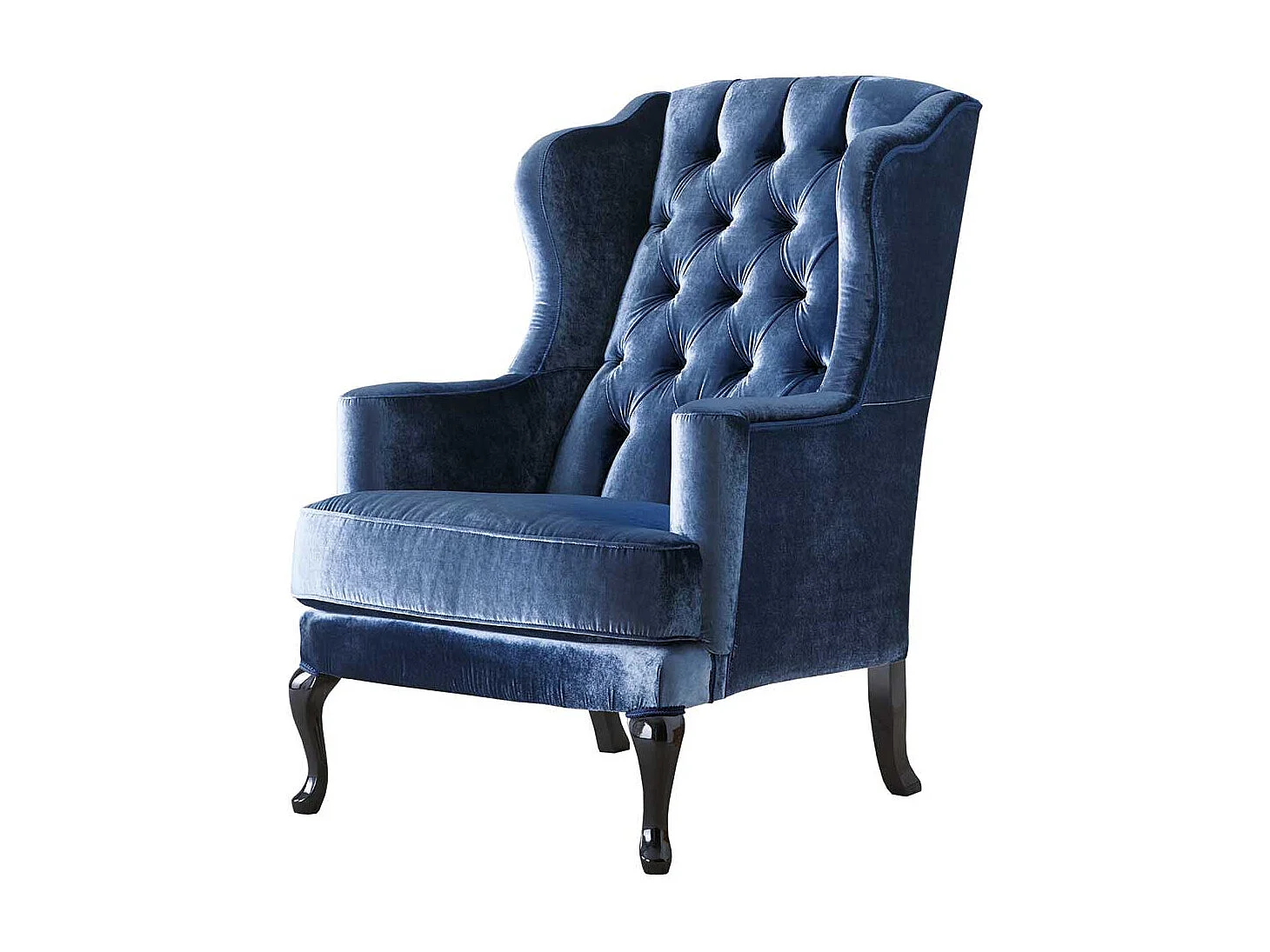Luxus Ohrensessel in Blau Samt Vierfußgestell aus Holz