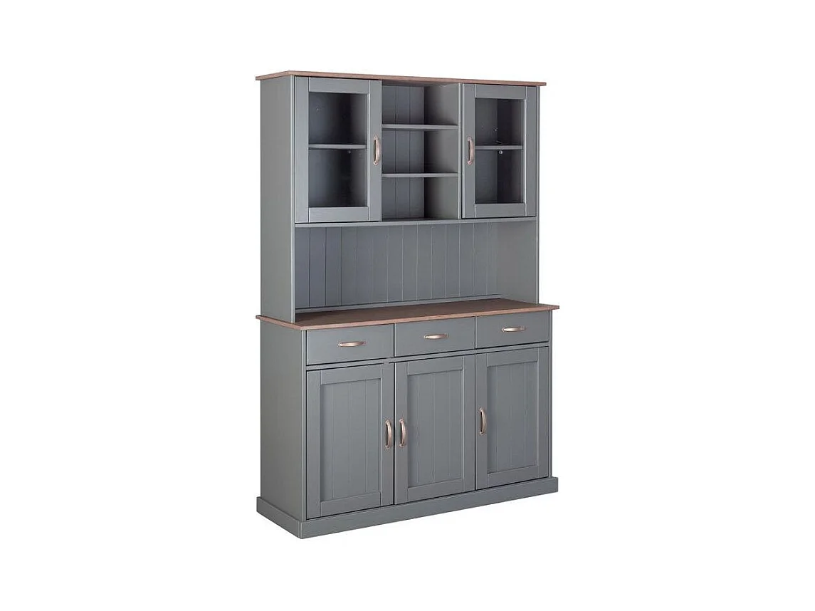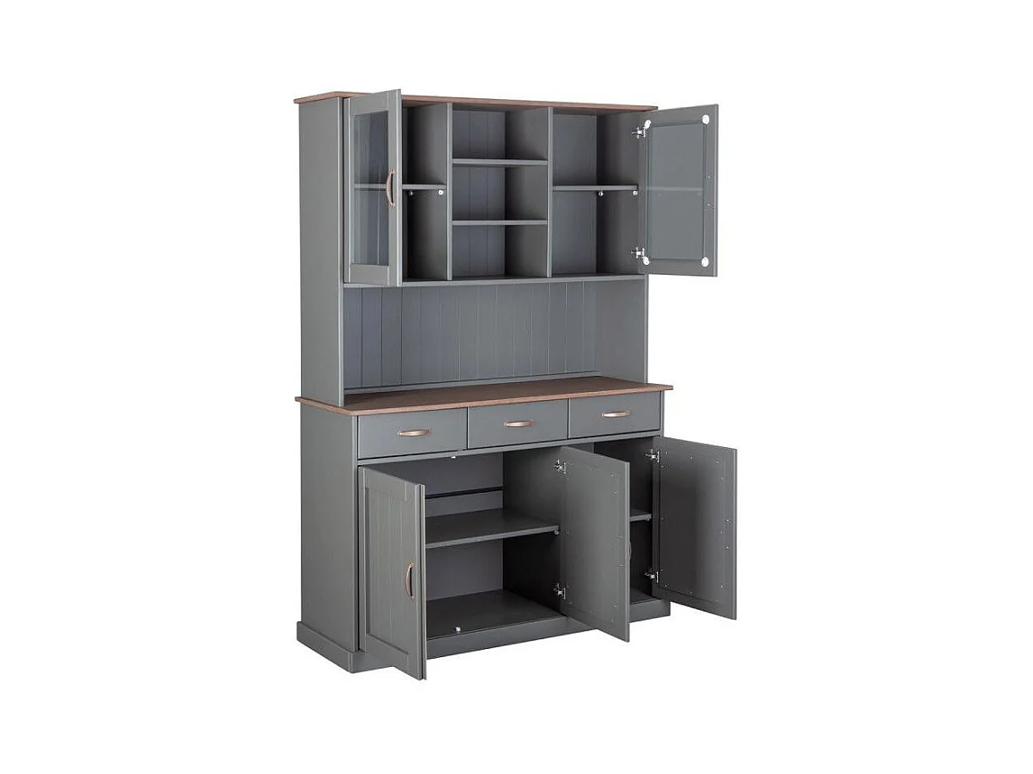 Luzerna Vitrinenschrank mit 3+2 Türen und 3 Schubladen Grau, Braun.