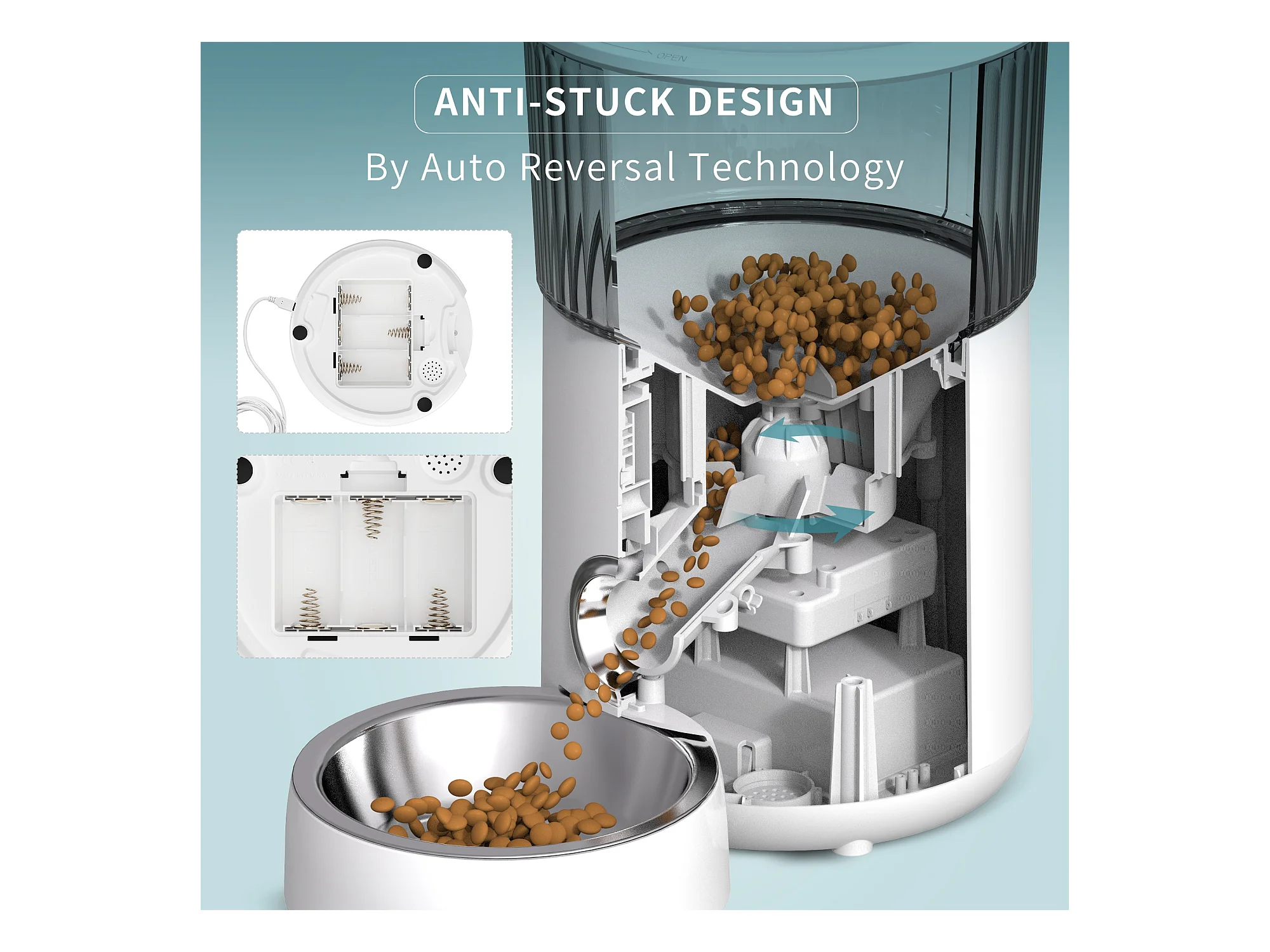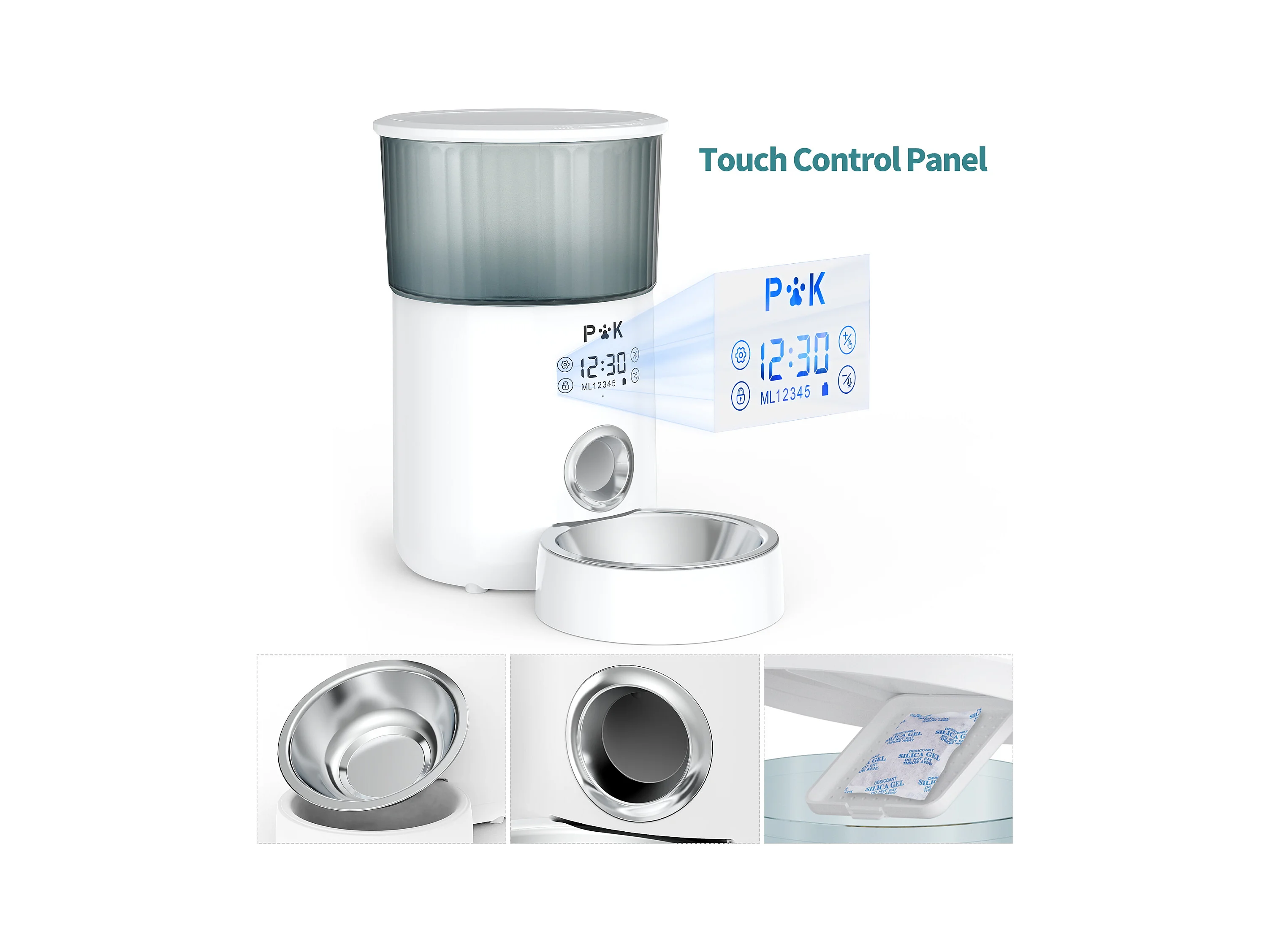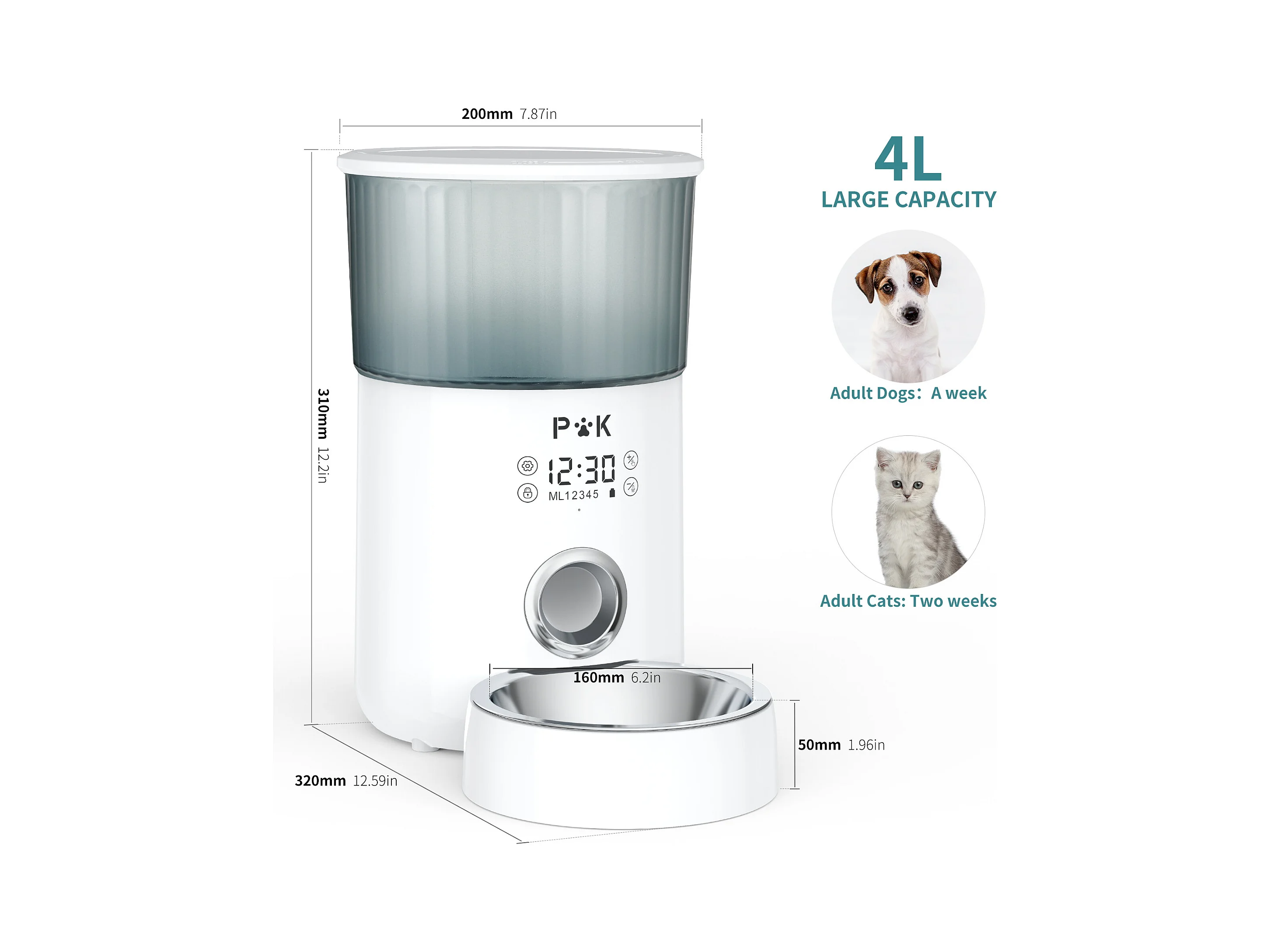M80 LCD 4L Krokettenspender p&k Katzen/Hunde Automatischer Futterspender mit Edelstahlnapf F10S Sprachprogrammierbar 5 Mahlzeiten/Tag, Weiß