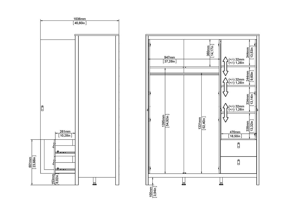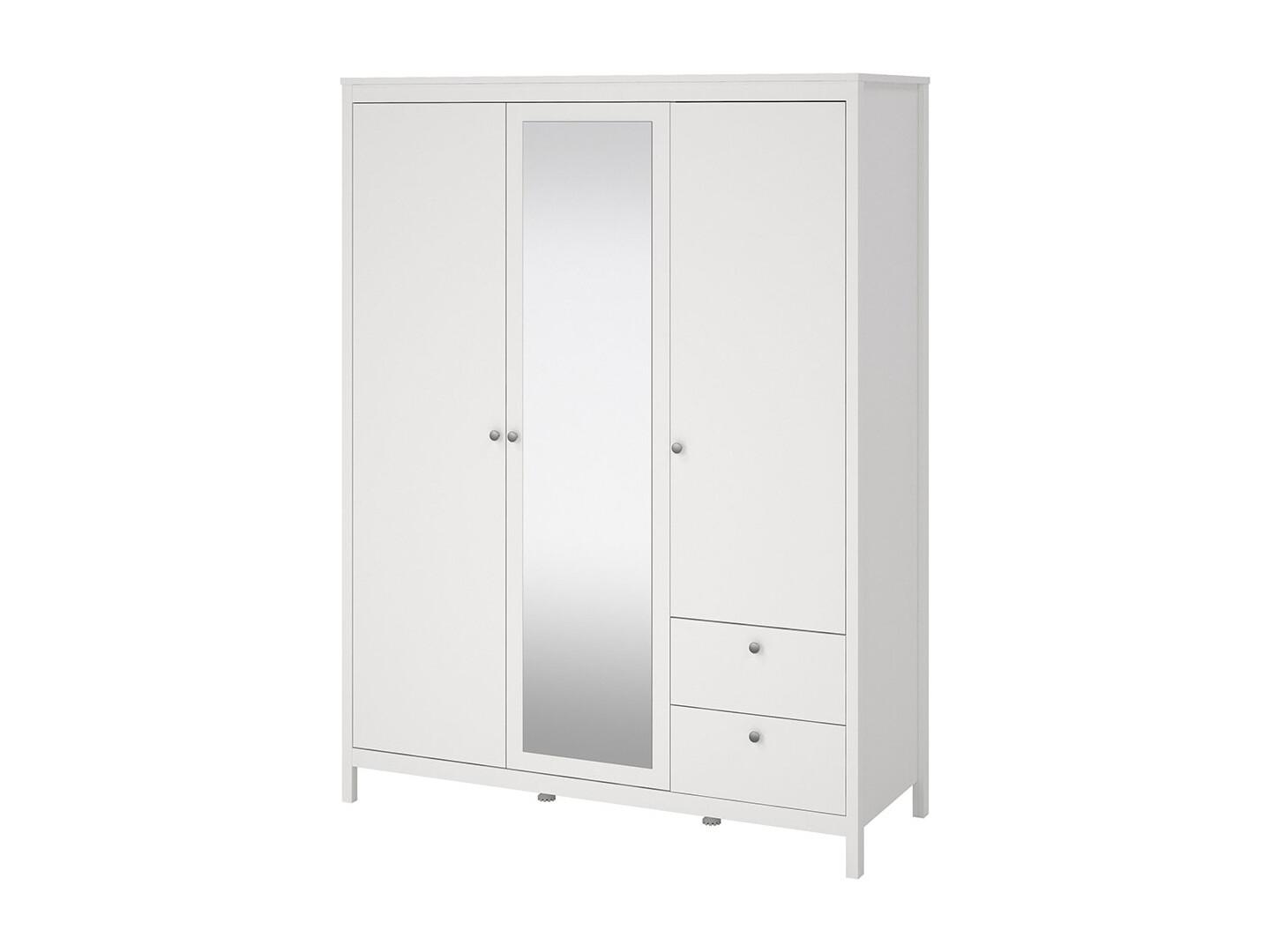 Madrid Kleiderschrank 199x150x59cm, 2 Türen, 1 Spiegeltür, 2 Schubladen weiß.