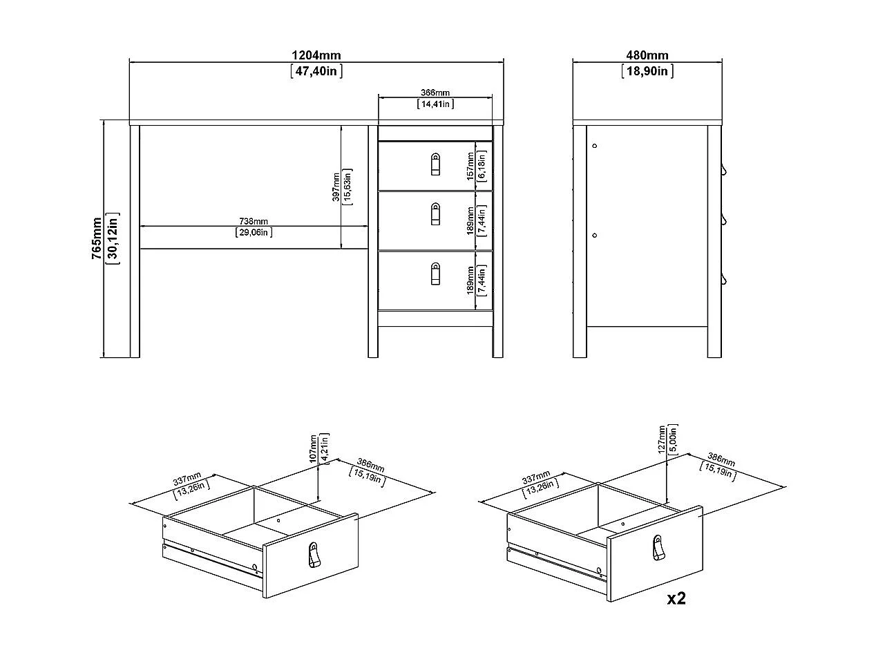 Madrid Schreibtisch 3 Schubladen Eichen-Dekor.