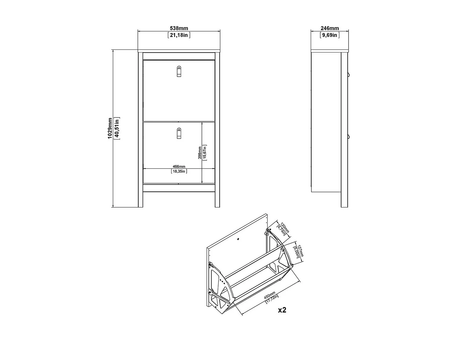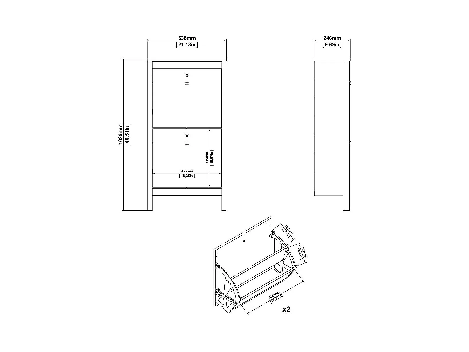 Madrid Schuhschrank 2 Klapptüren Eichen-Dekor.
